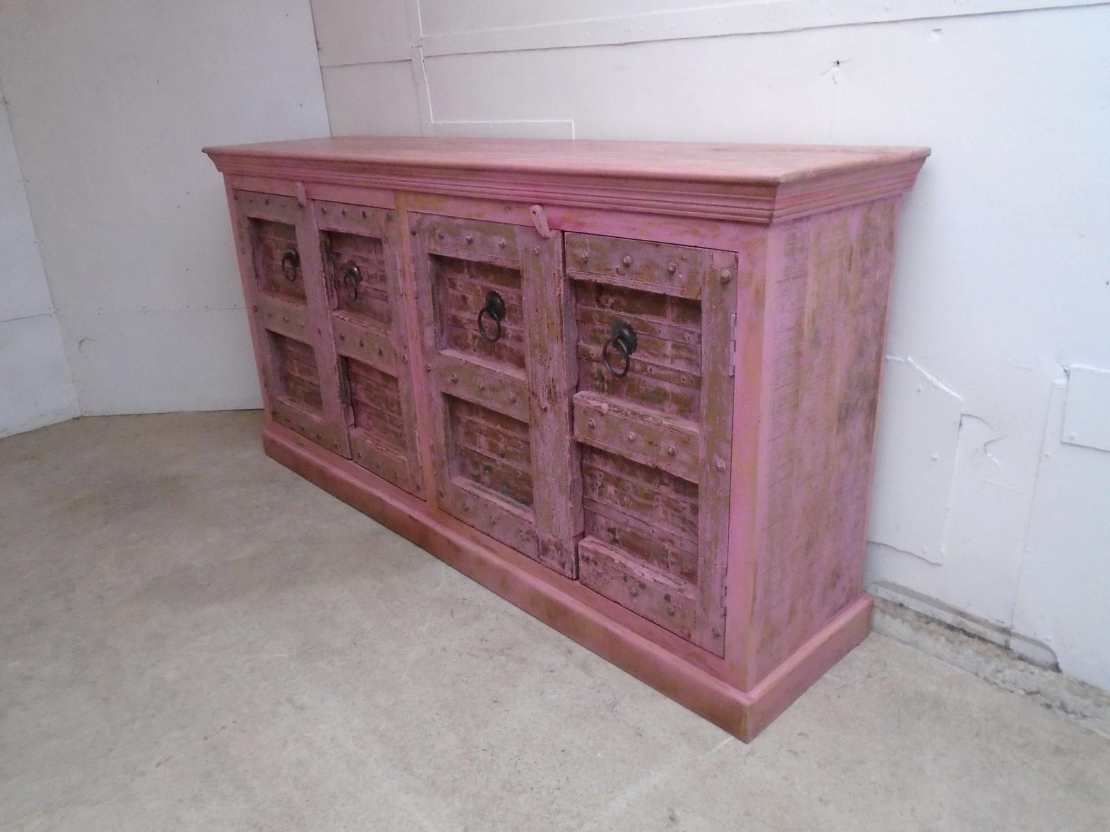 Handmade Indian Mango / Teak Pink 4 Door Dresser Base Sideboard / TV Stand