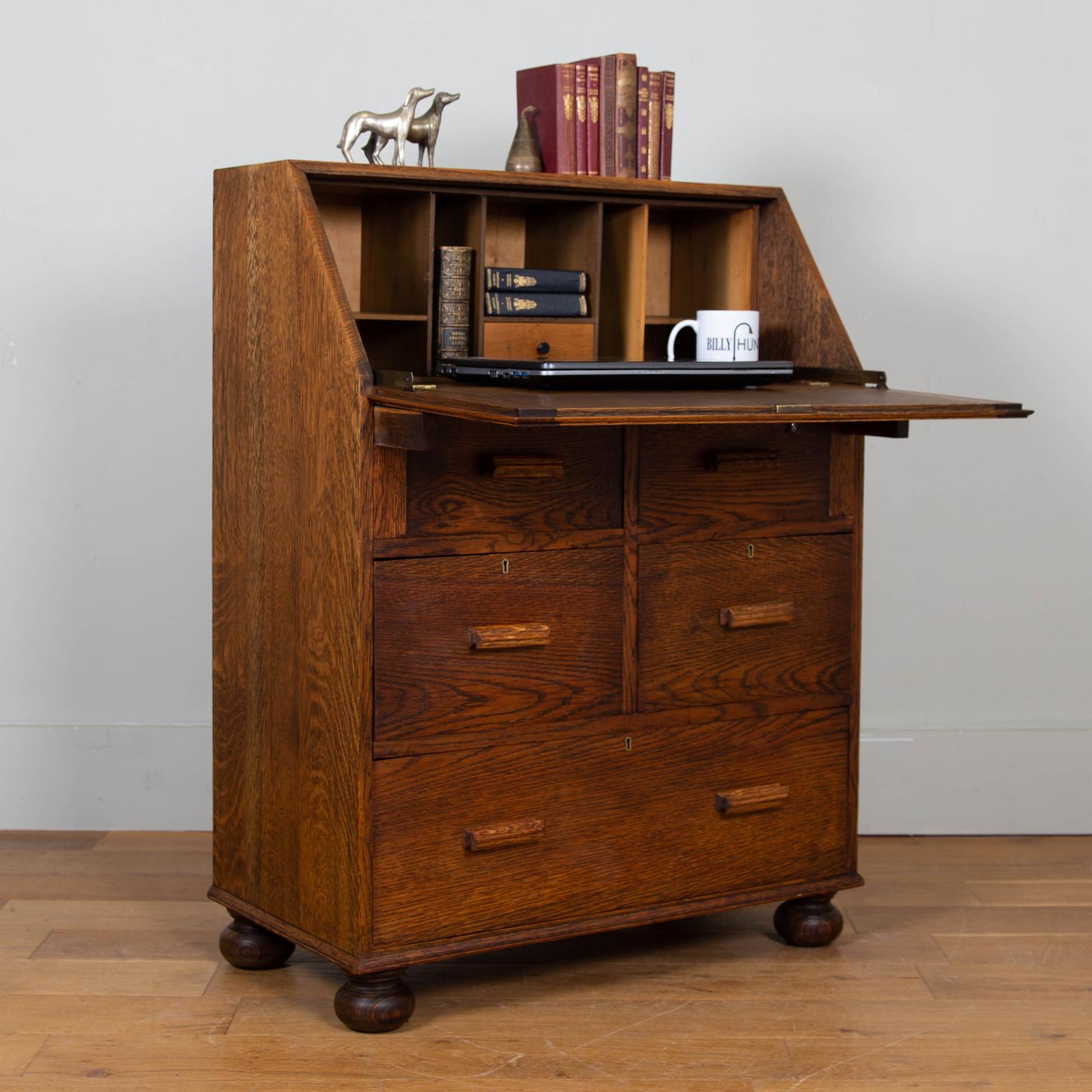 Handsome 1930s Vintage Oak 5 Drawer Bureau Desk