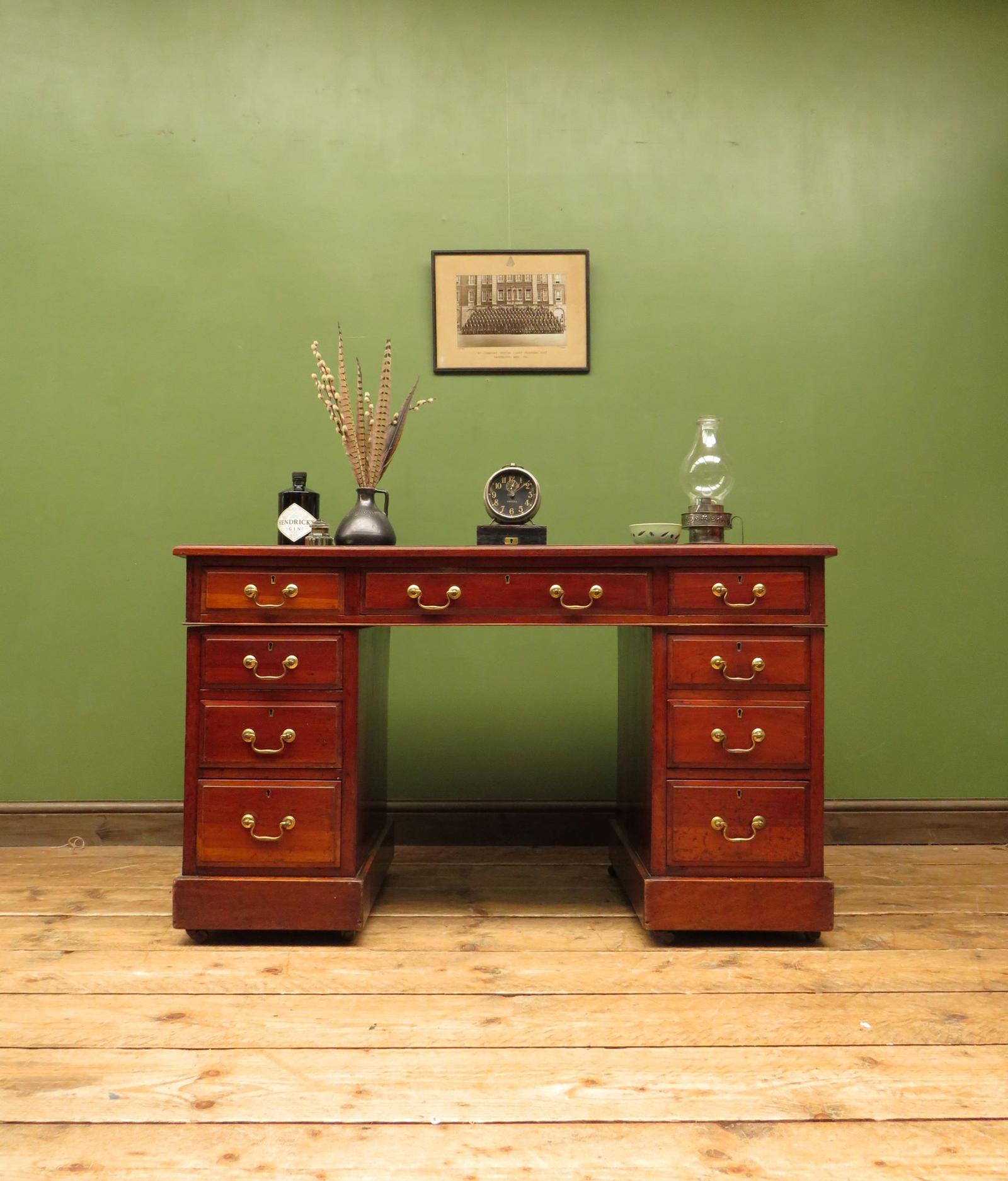 Handsome Antique Pedestal Desk with New Black Leather to Top