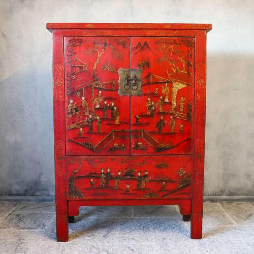 Handsome Early 20th Century Cinnabar Red Chinese Marriage Cabinet (1 of 16)