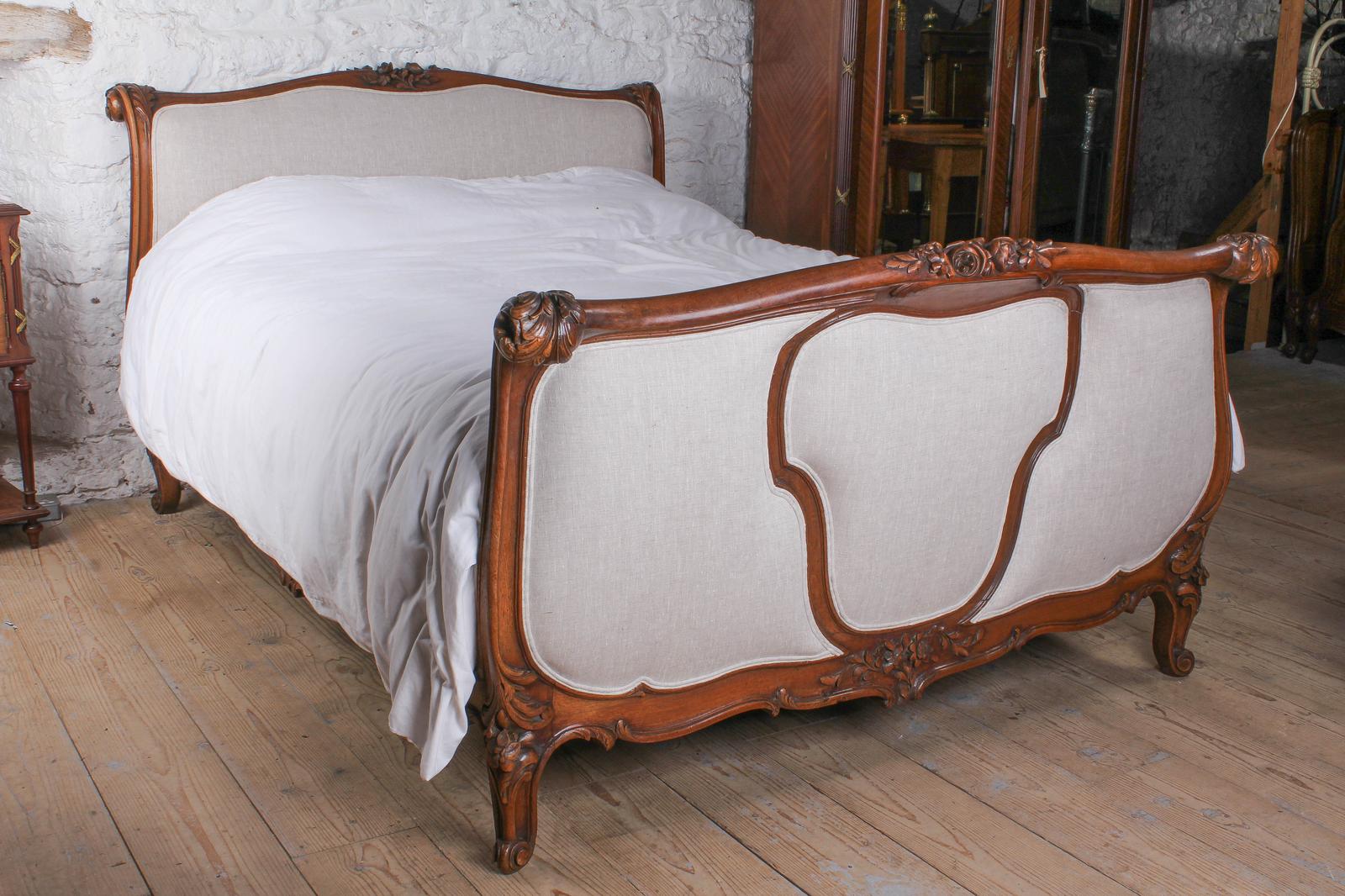 Handsome Early Upholstered Louis XV Style King Size Bed