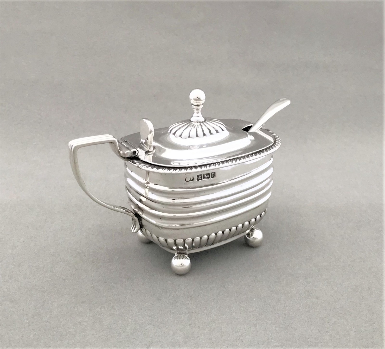 Handsome Edwardian Silver Mustard Pot & Spoon