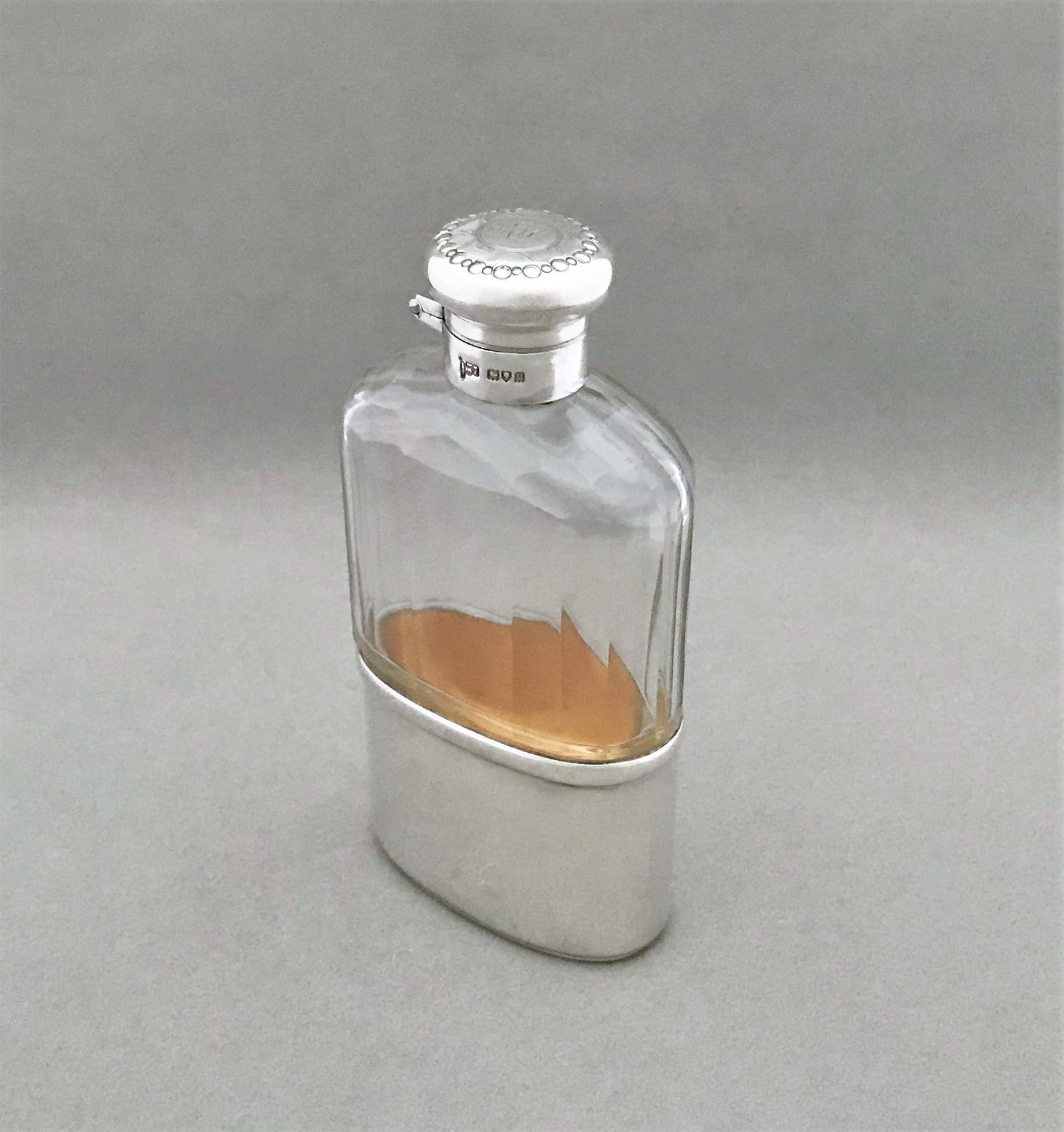 Handsome George V silver & glass hip flask