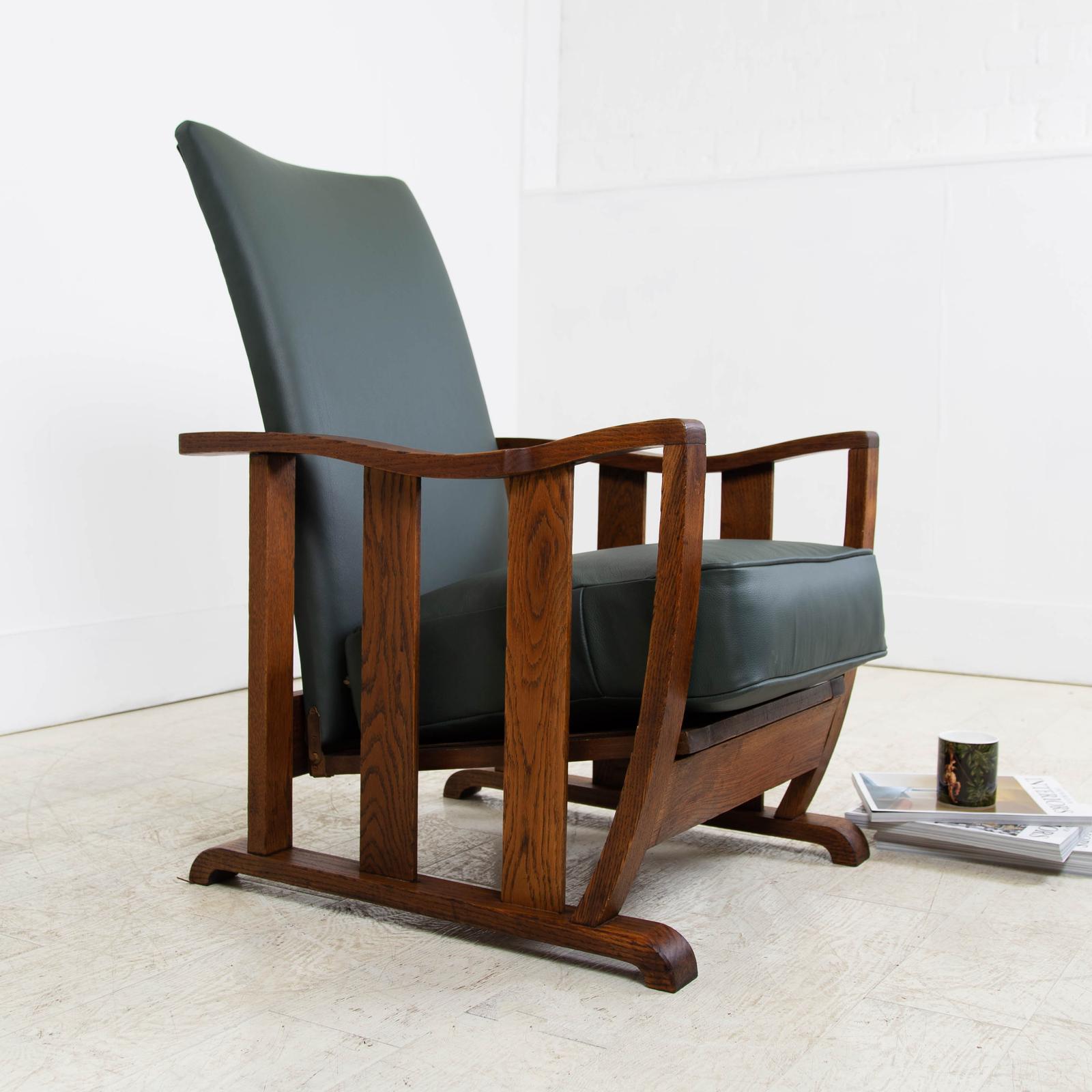 Handsome Oak & Leather Art Deco Armchair c.1930