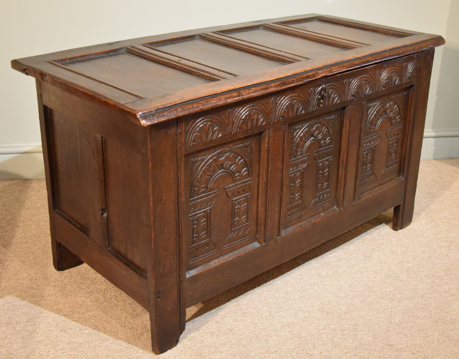 Handsome Oak Three Arched Carved Panelled Coffer (1 of 1)