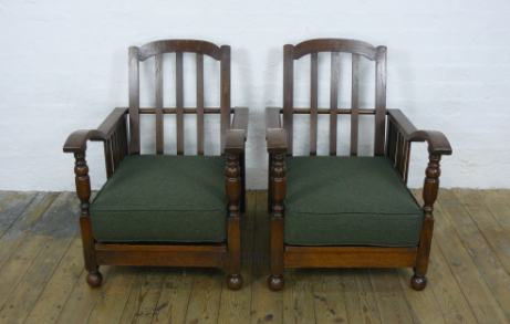 Handsome Pair of 1920s Oak Reclining Armchairs with New Seats (1 of 1)