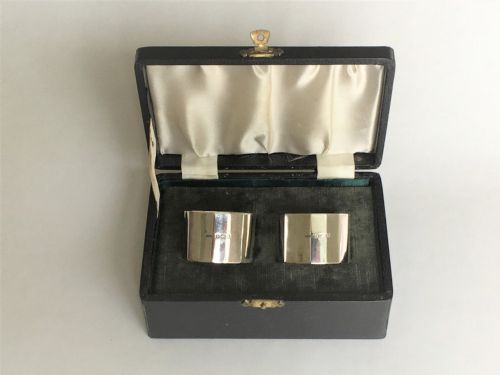 Handsome Pair of Boxed Art Deco Silver Napkin Rings