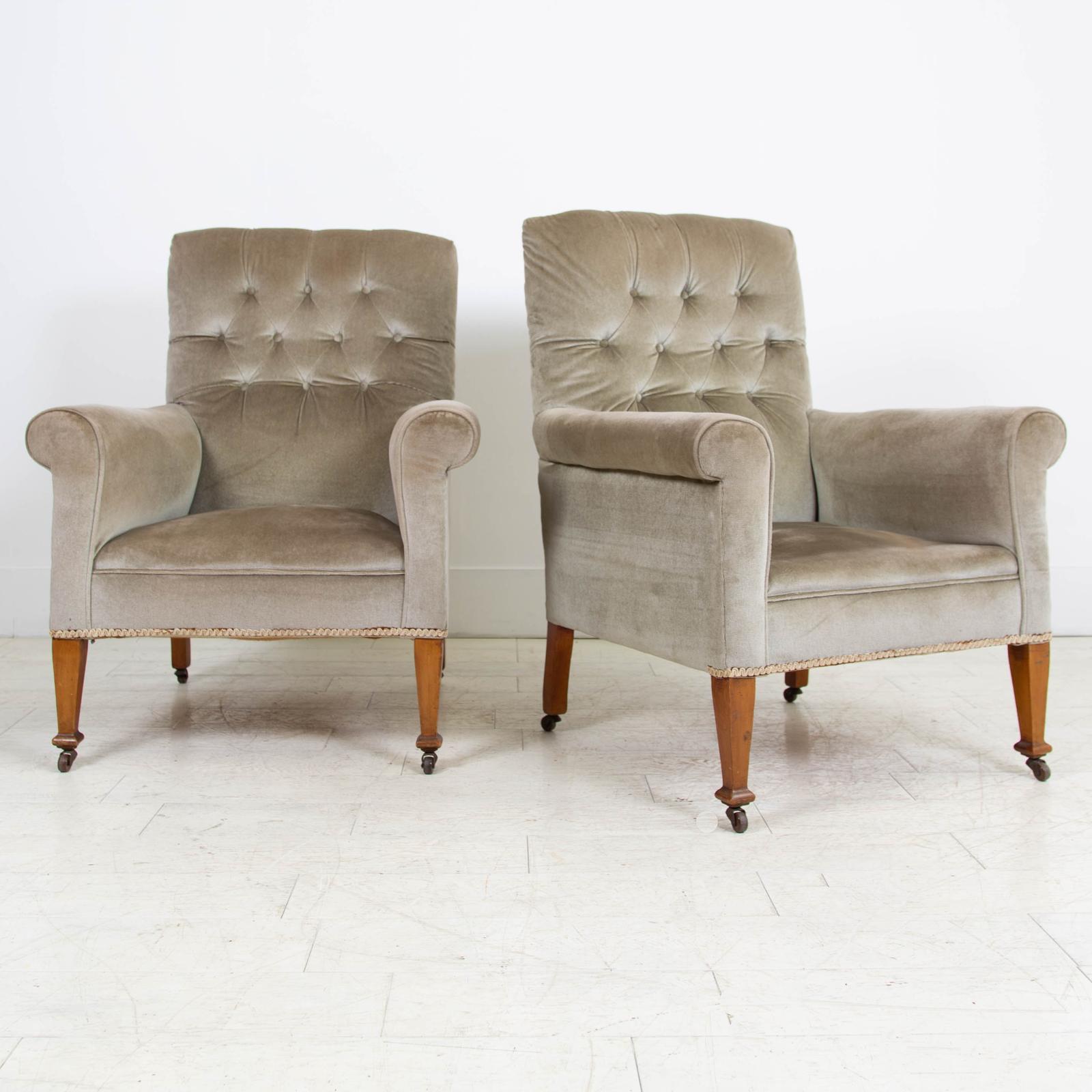 Handsome Pair of Edwardian Armchairs for Upholstery