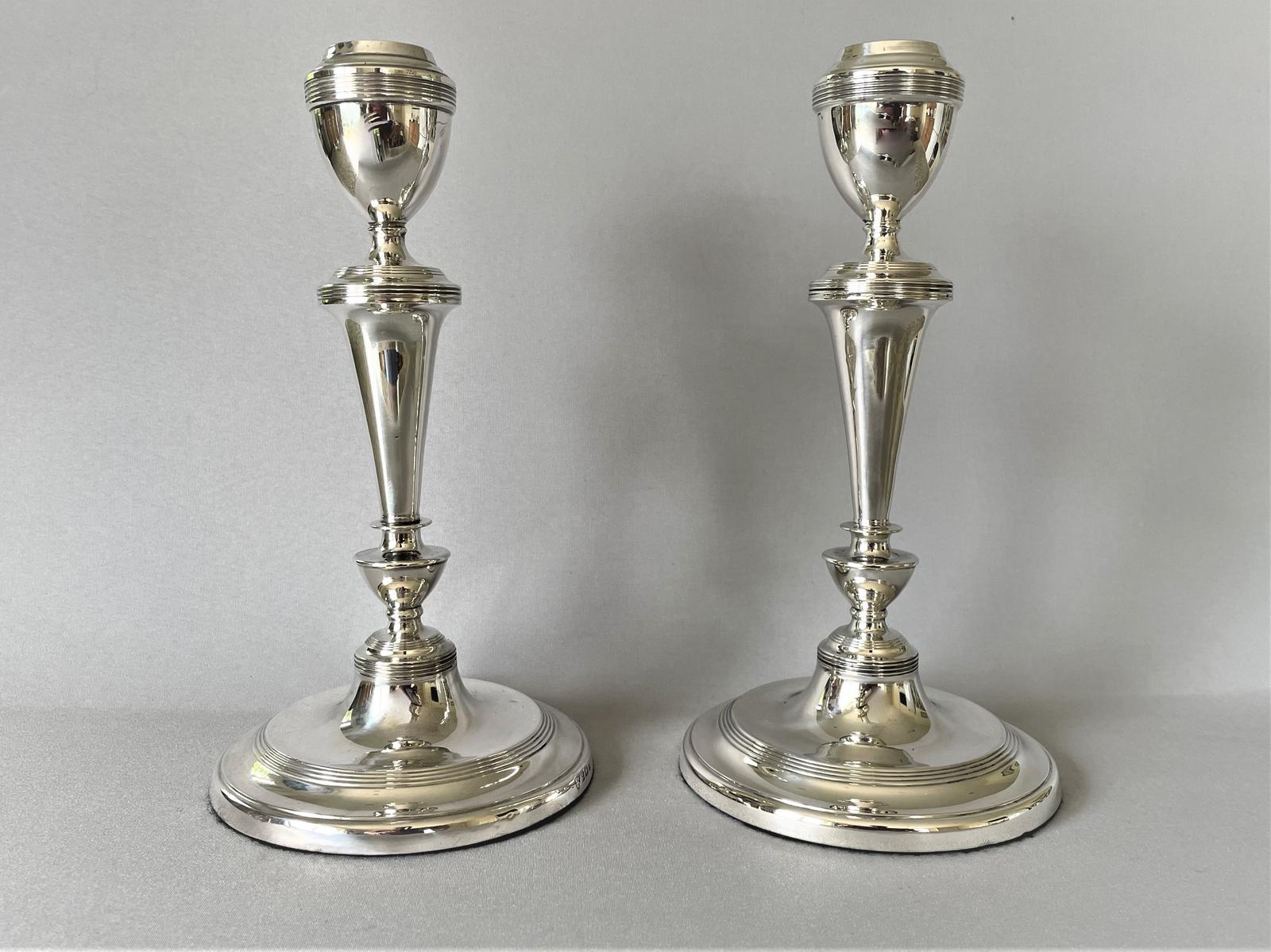 Handsome Pair of Full Height Edwardian Silver Candlesticks