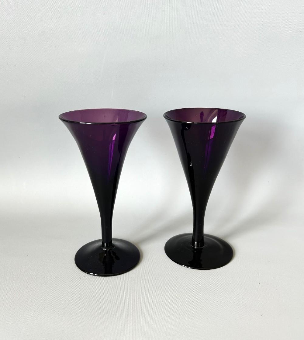 Handsome Pair of Georgian Amethyst Glass Wine Flutes (1 of 6)