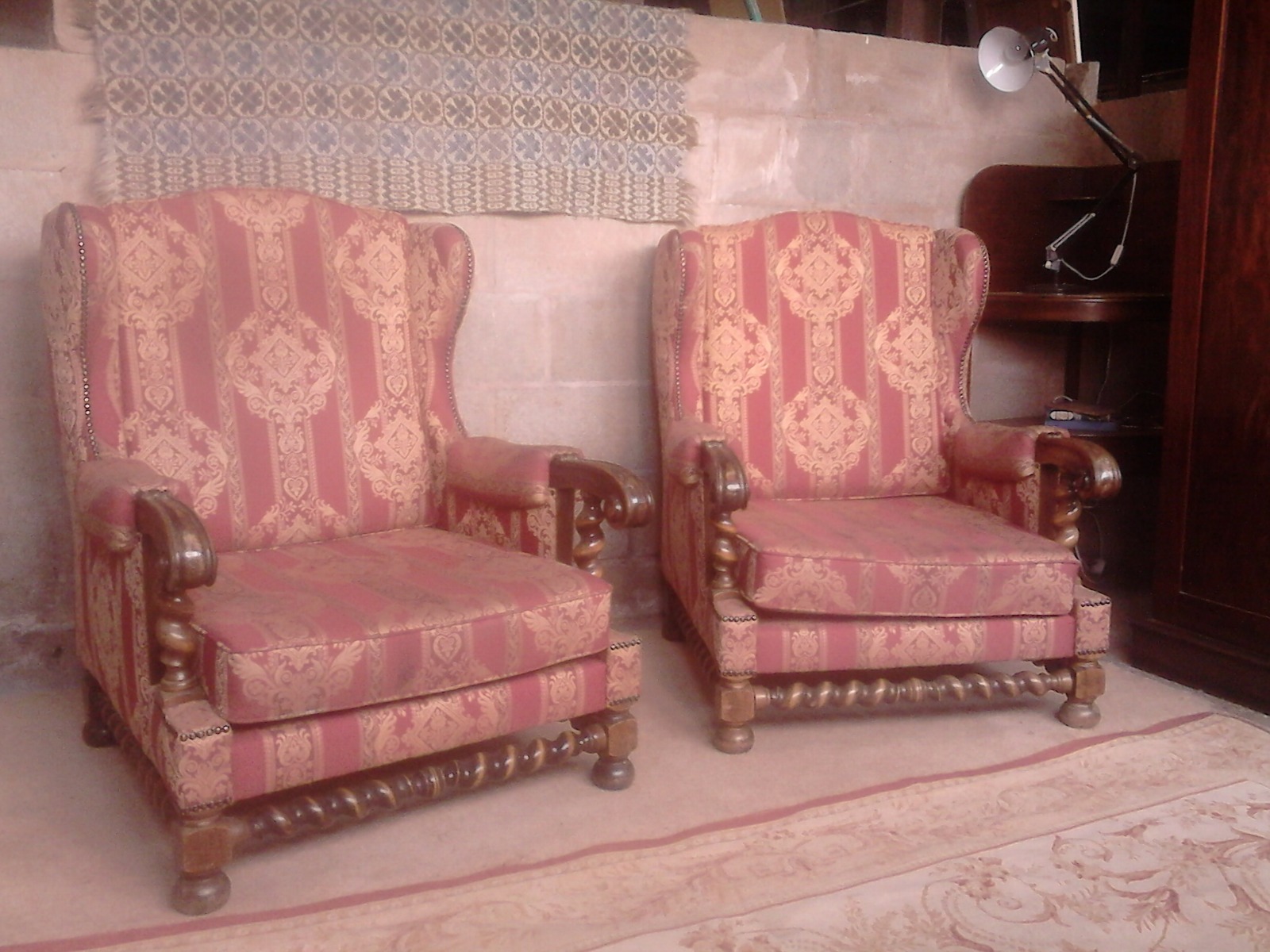 Handsome Pair of Solid Oak Wing Back Armchairs