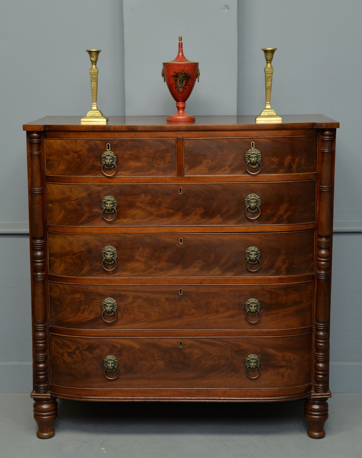 Handsome Regency Mahogany Bow-Front Chest of Drawers