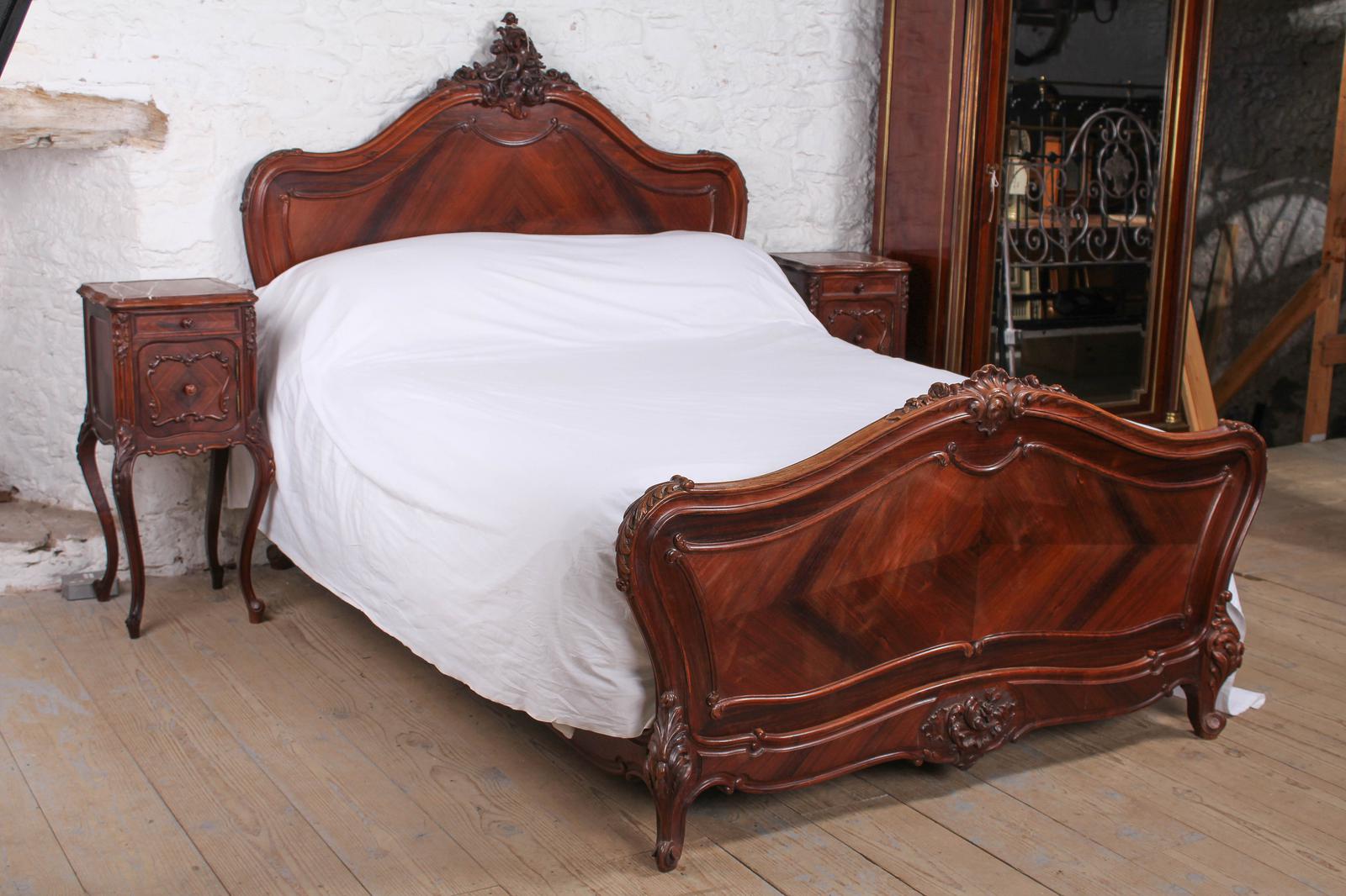 Handsome Rosewood King Size Louis XV Style Bed & Matching Bedsides (1 of 12)