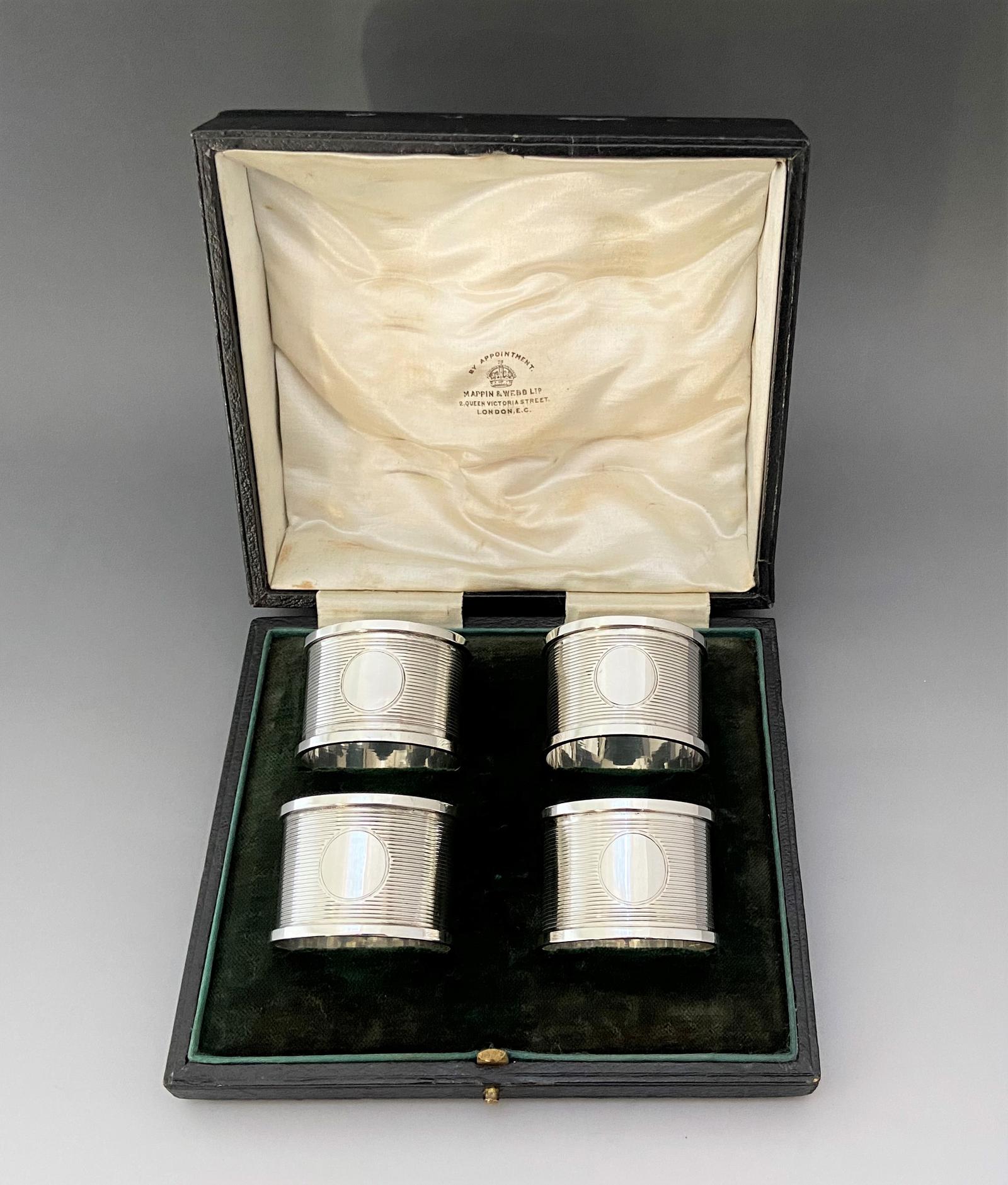 Handsome Set of Four Boxed Chester Silver Napkin Rings