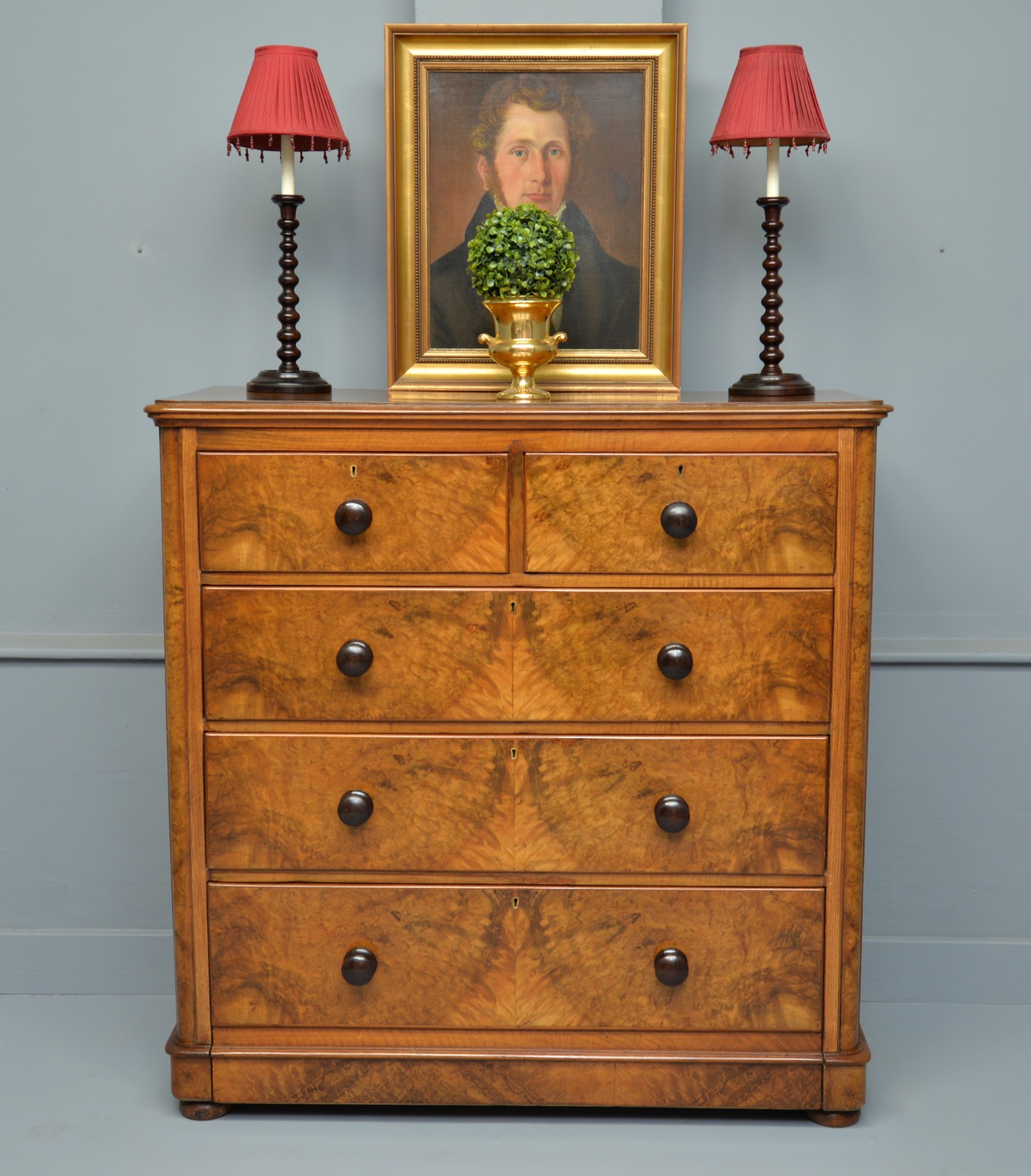 Handsome Victorian Burr-Walnut Antique Chest of Drawers
