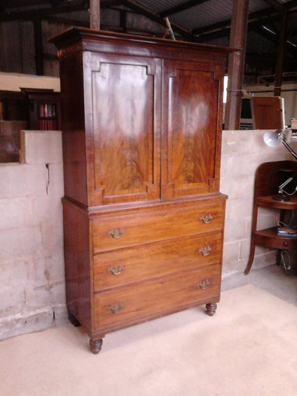 Handsome William IV Flame Mahogany Linen Press