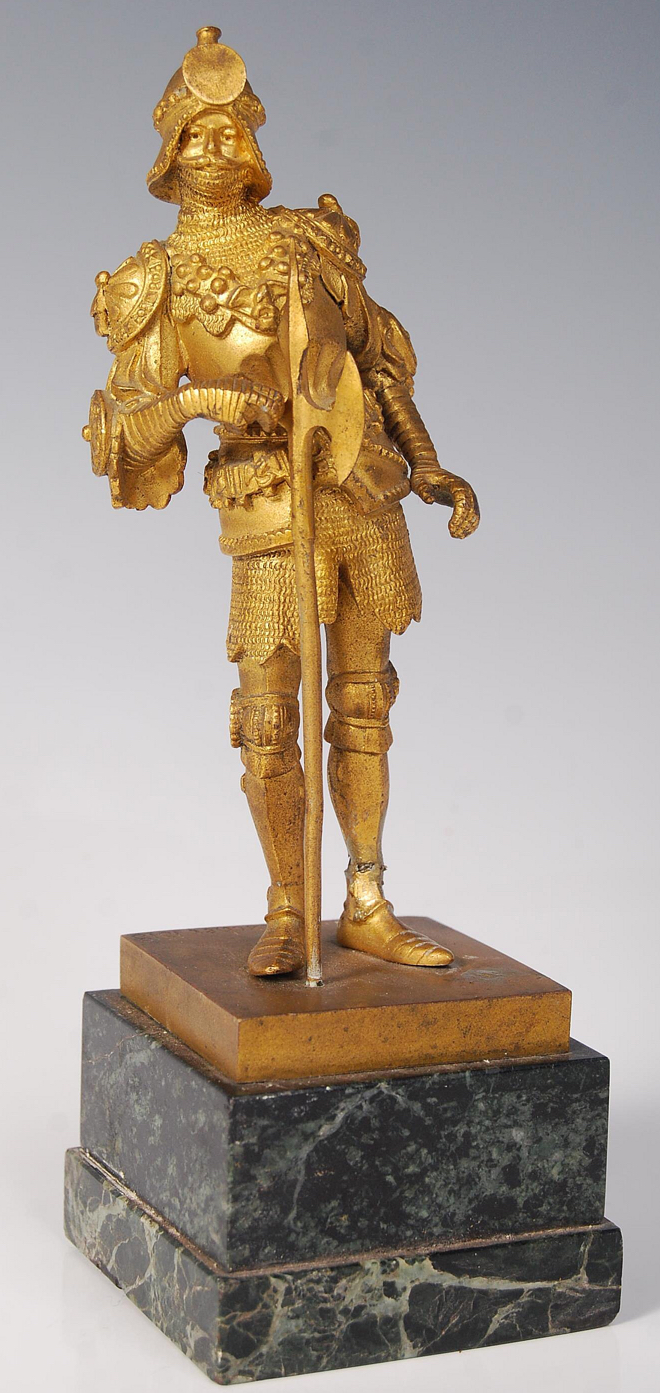 Hans Müller Austrian Gilt Bronze Statue of a Knight