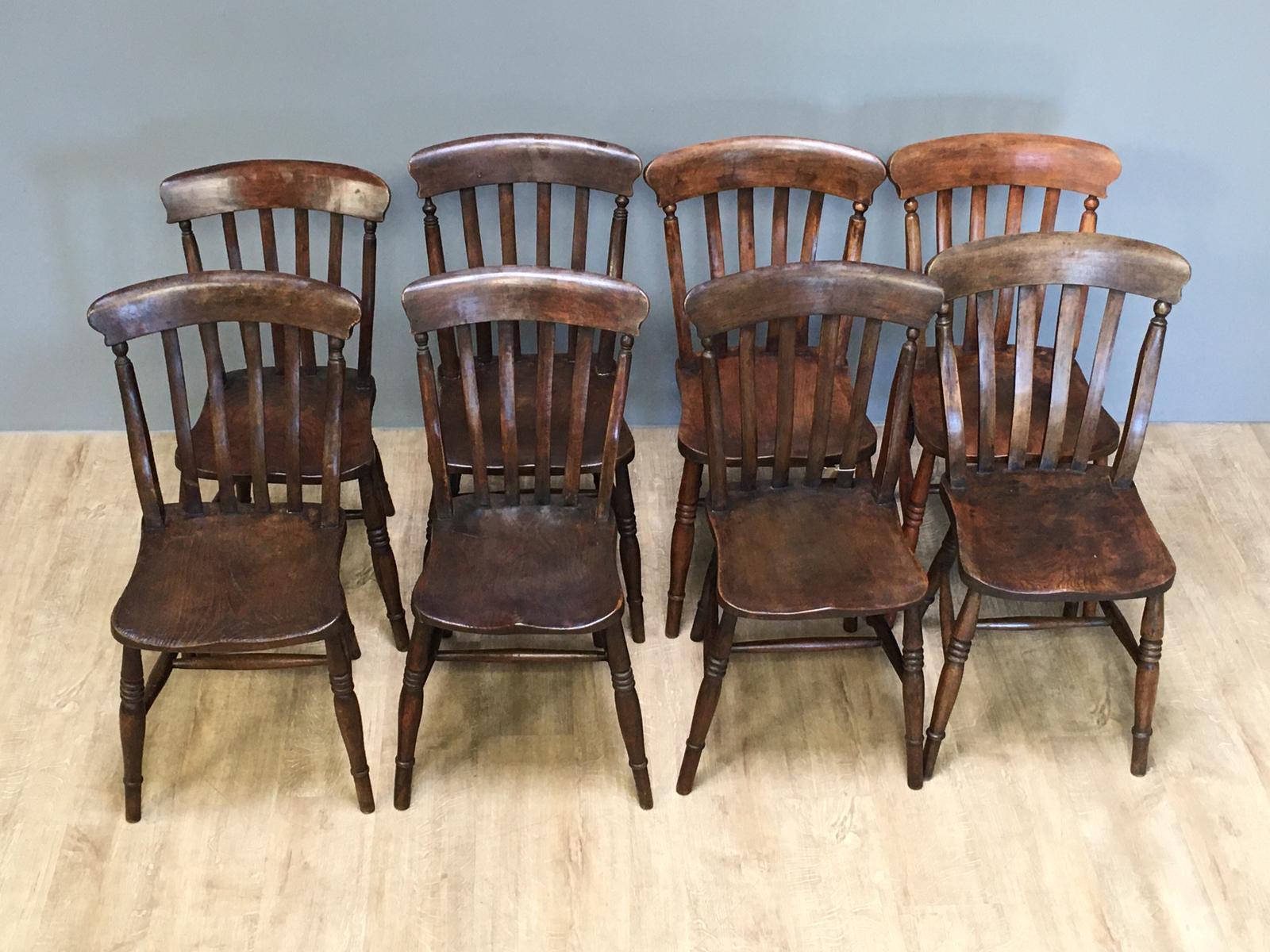 Harlequin or Near Matched Set of 8 Kitchen Chairs