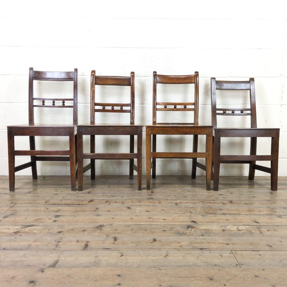 Harlequin Set of 19th Century Welsh Oak Ball & Rail Back Chairs