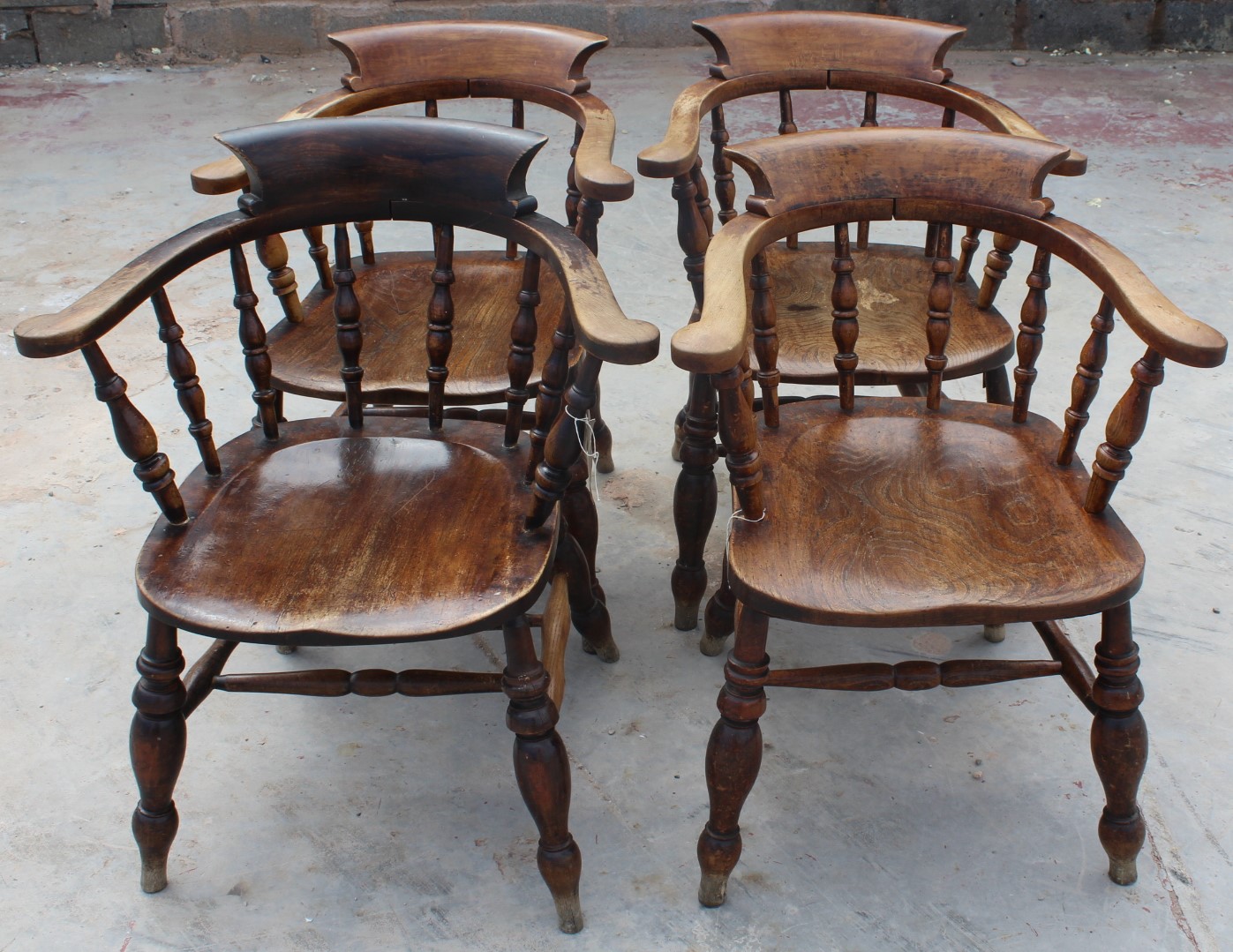 Harlequin Set of 4 Oak Smokers Bow Armchairs c.1900