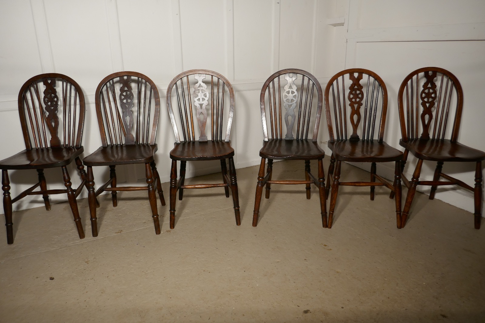 Harlequin Set of 6 Beech & Elm Wheel-back Windsor Kitchen Dining Chairs