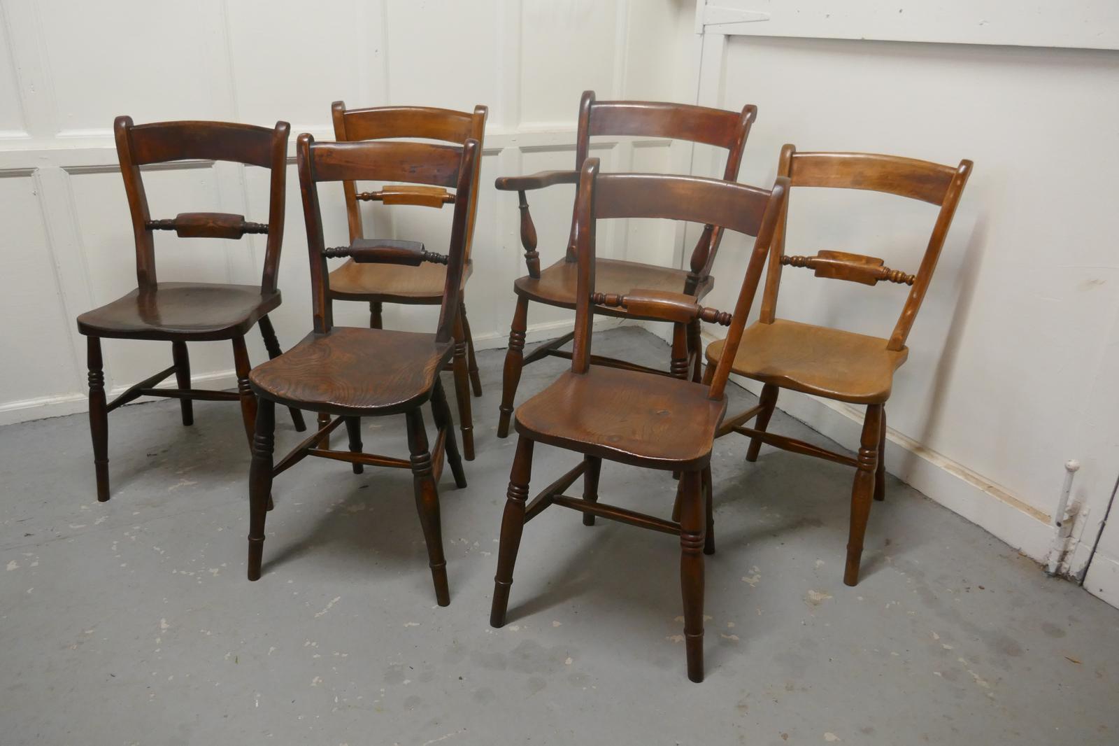 Harlequin Set of 6 Victorian Beech & Elm Rope Back Kitchen Chairs