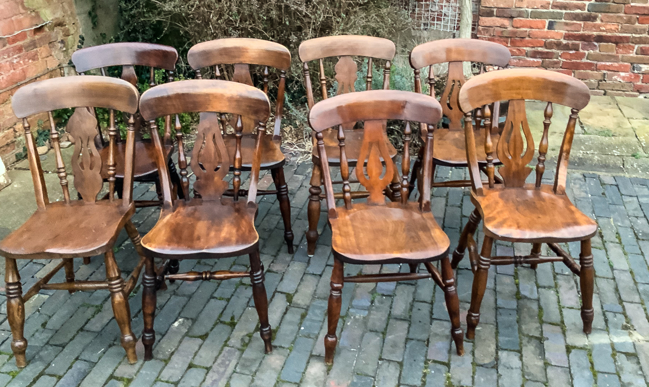 Harlequin Set of 8 Fiddle Back Kitchen Chairs c.1880 (1 of 8)