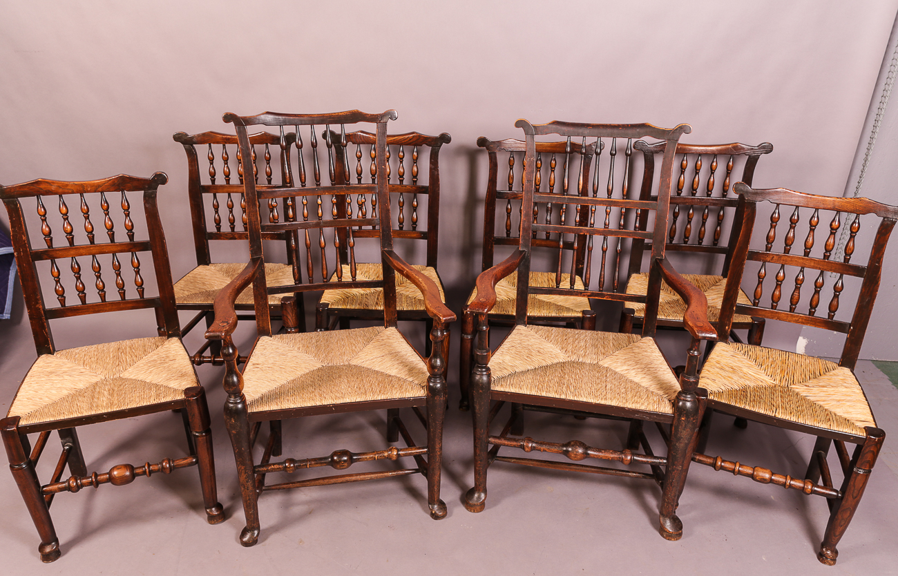 Harlequin Set of 8 Spindle Back Country Chairs c.1800 (1 of 1)