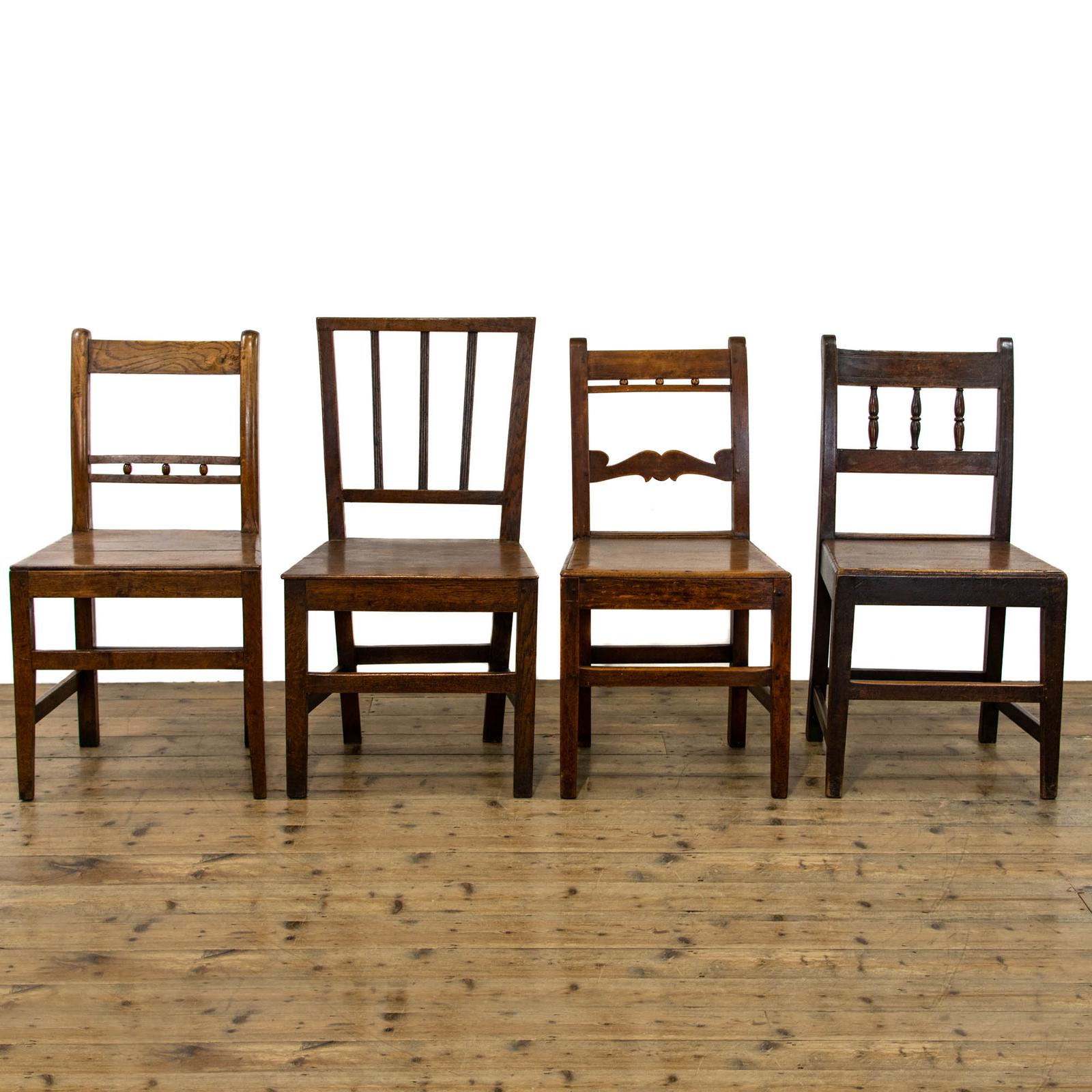 Harlequin Set of Four Antique Welsh Oak Farmhouse Chairs (1 of 11)