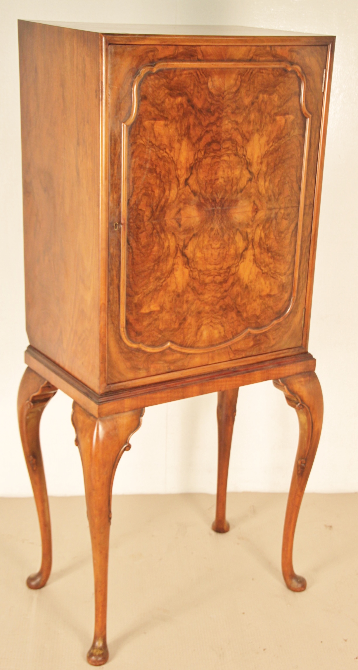 Harrods Burr Walnut Cabinet on Legs c.1920