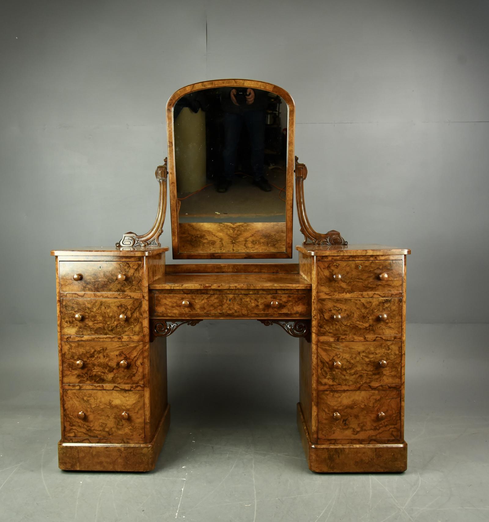 Heals & Son Victorian Burr Walnut Pedestal Dressing Table (1 of 8)