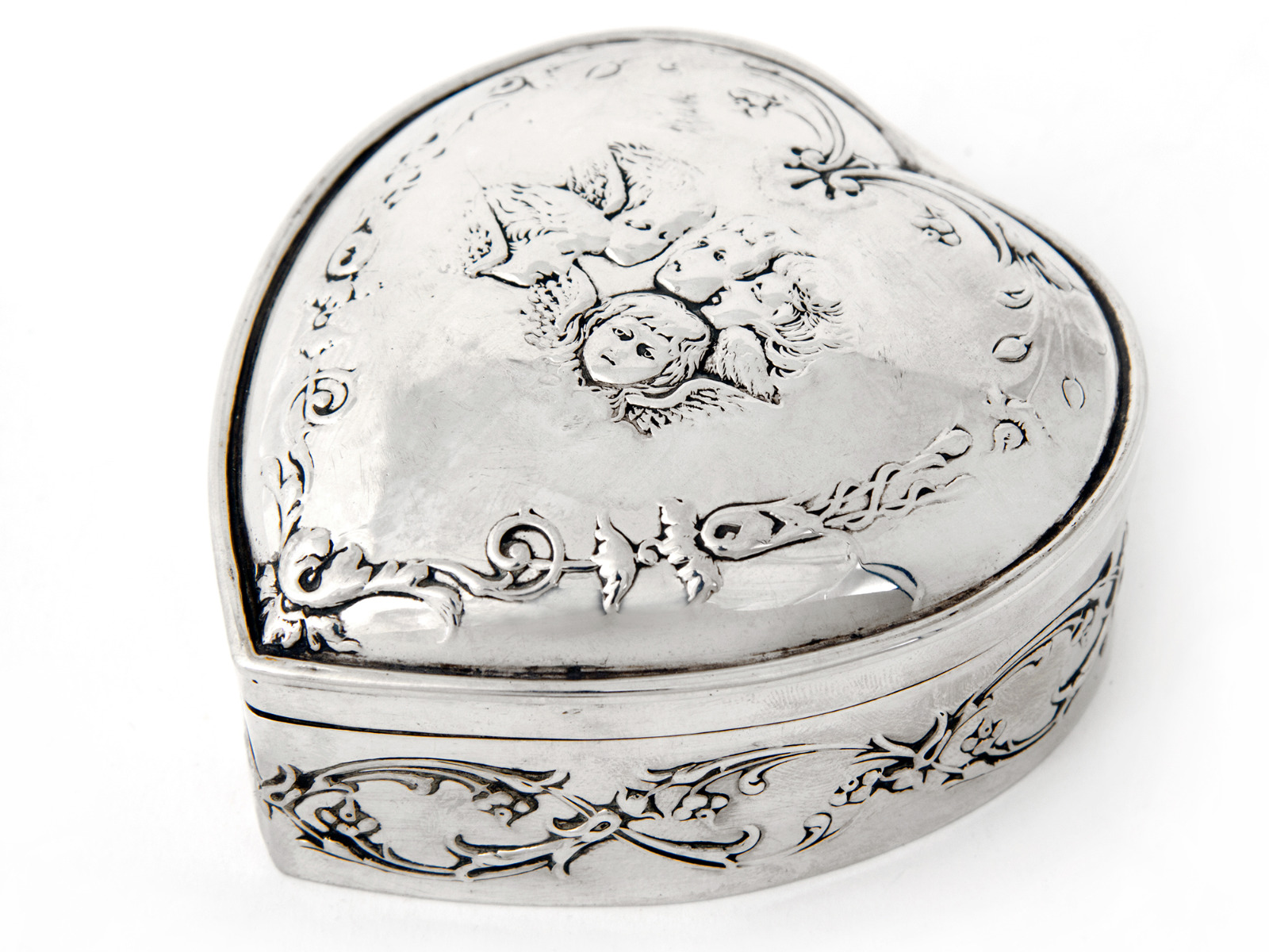 Heart Shaped Silver Box with Reynolds Angels & Gilt Lining (1 of 1)