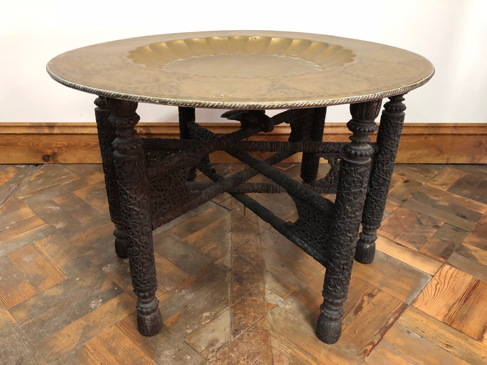 Heavily Carved Brass Tray Top Folding Table (1 of 1)