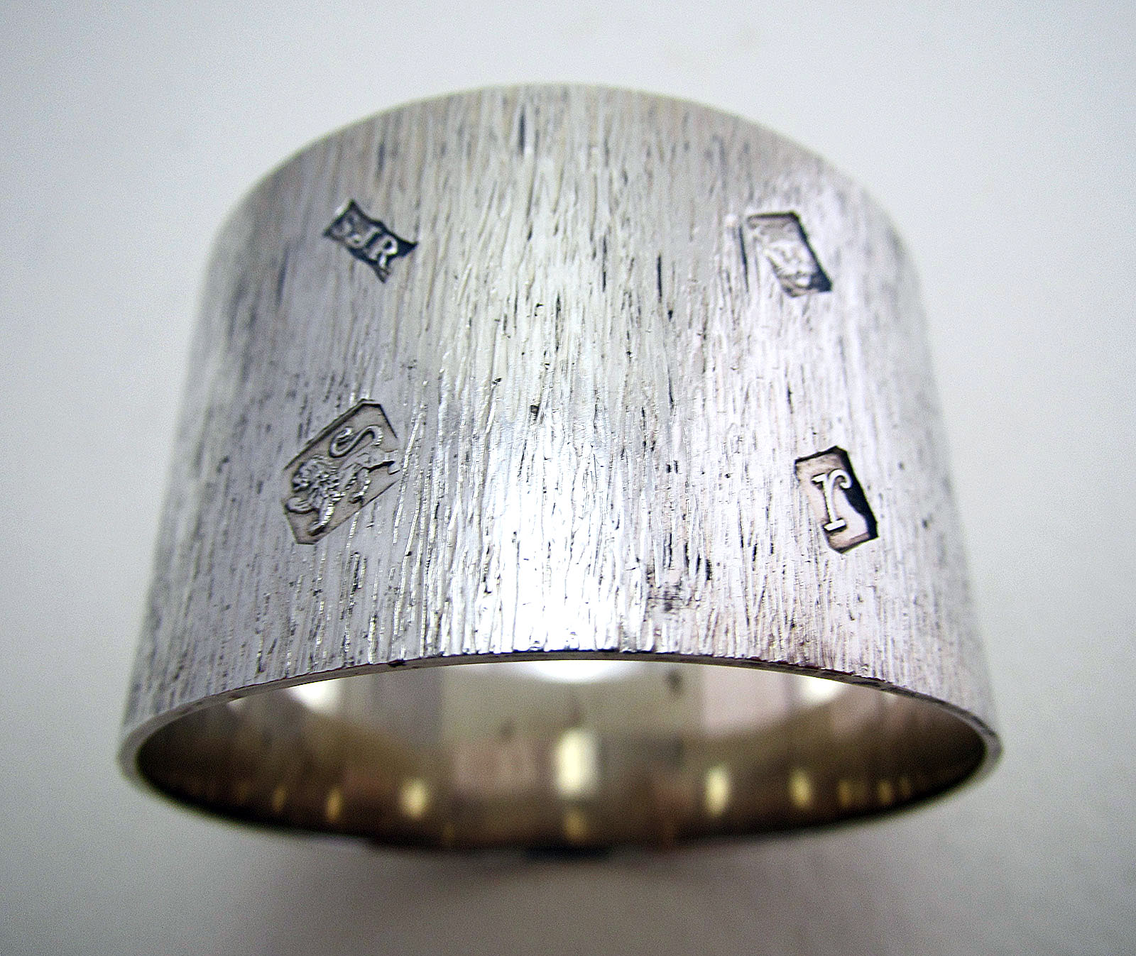 Heavy 47G Bark Effect with Feature Hallmarks, Solid Sterling Silver Serviette Napkin Ring, Retro / Vintage 1972 (1 of 5)