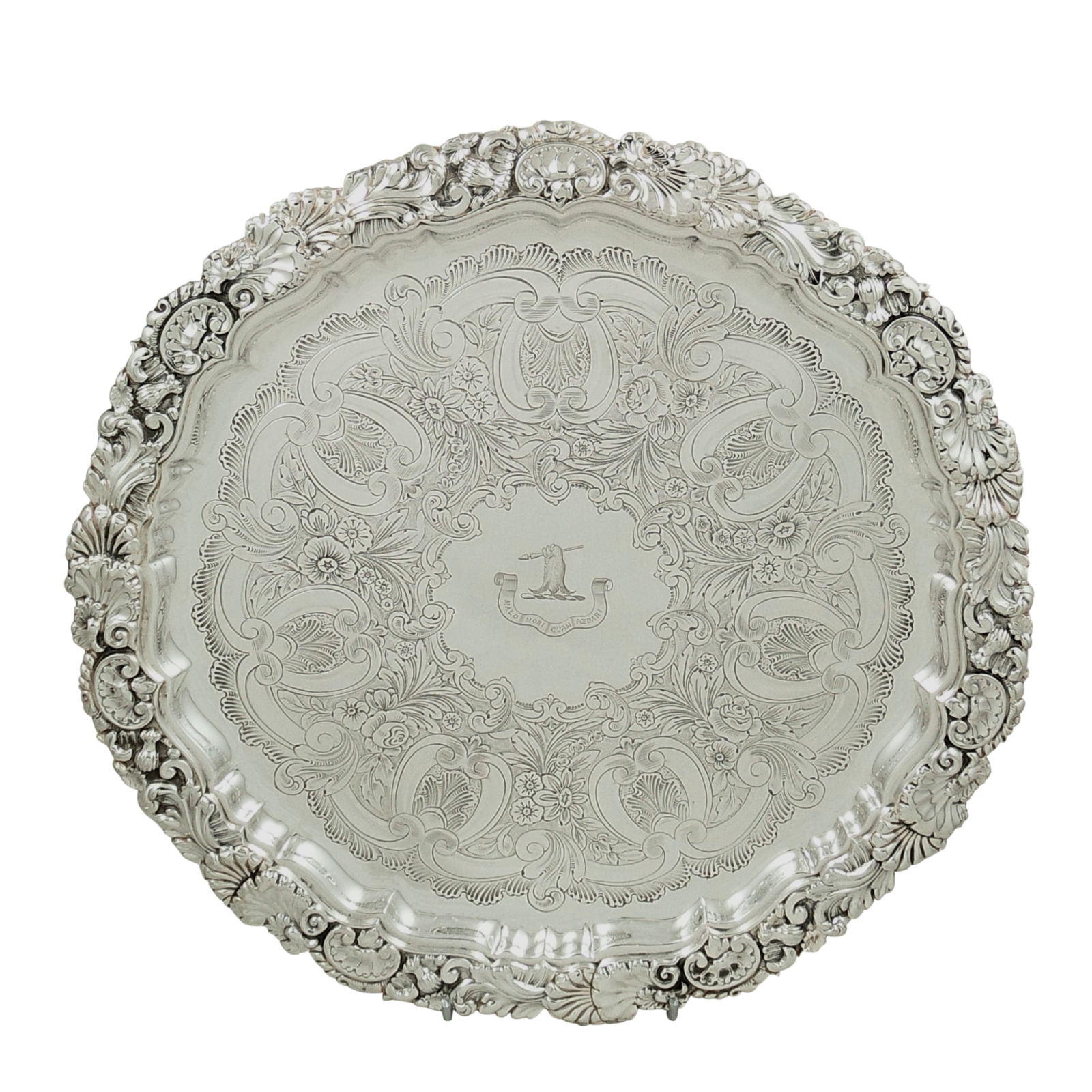 Heavy Antique Edwardian Sterling Silver 12' Tray / Salver 1904