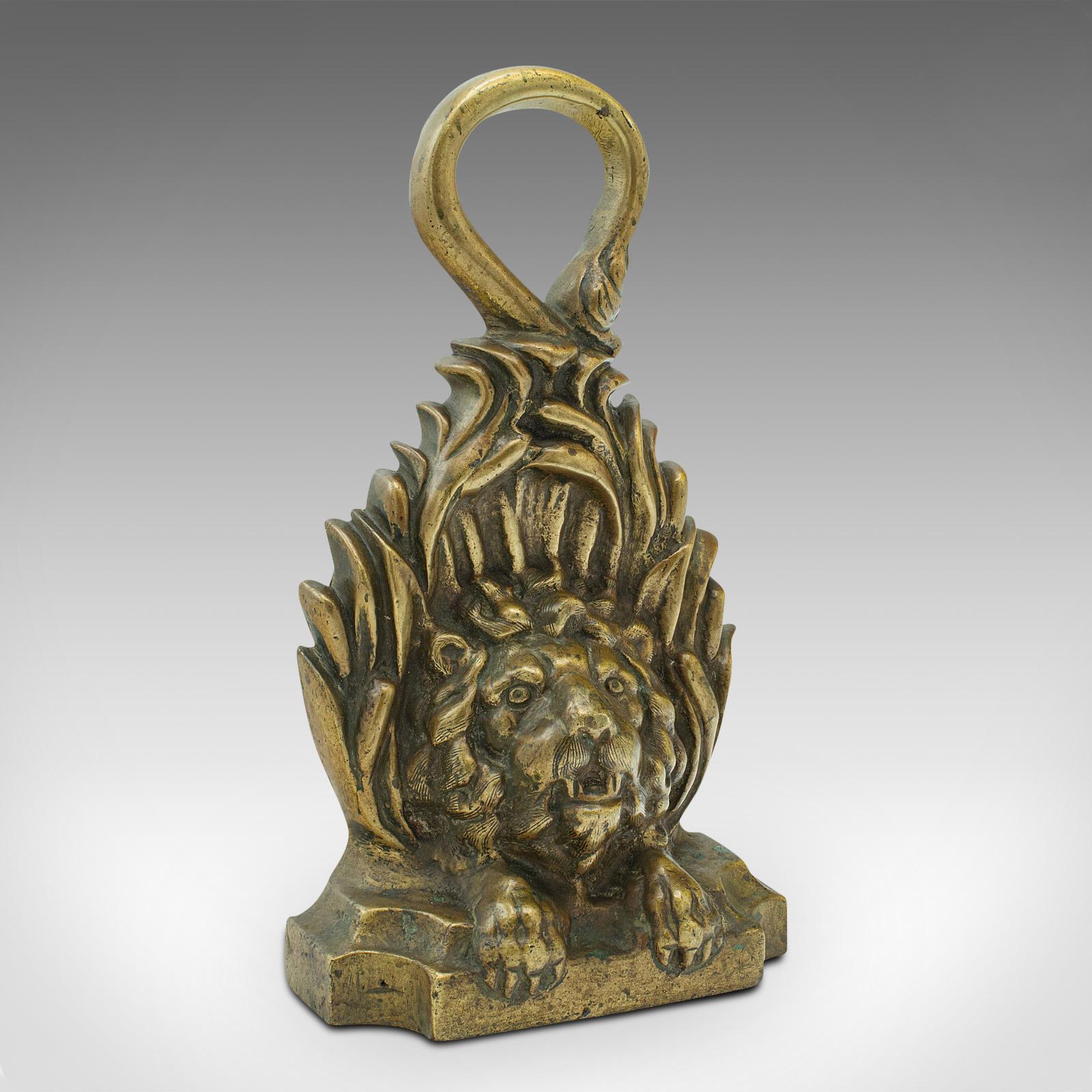 Heavy Antique Lion Doorstop, English, Brass, Decorative, Door Keep, Victorian