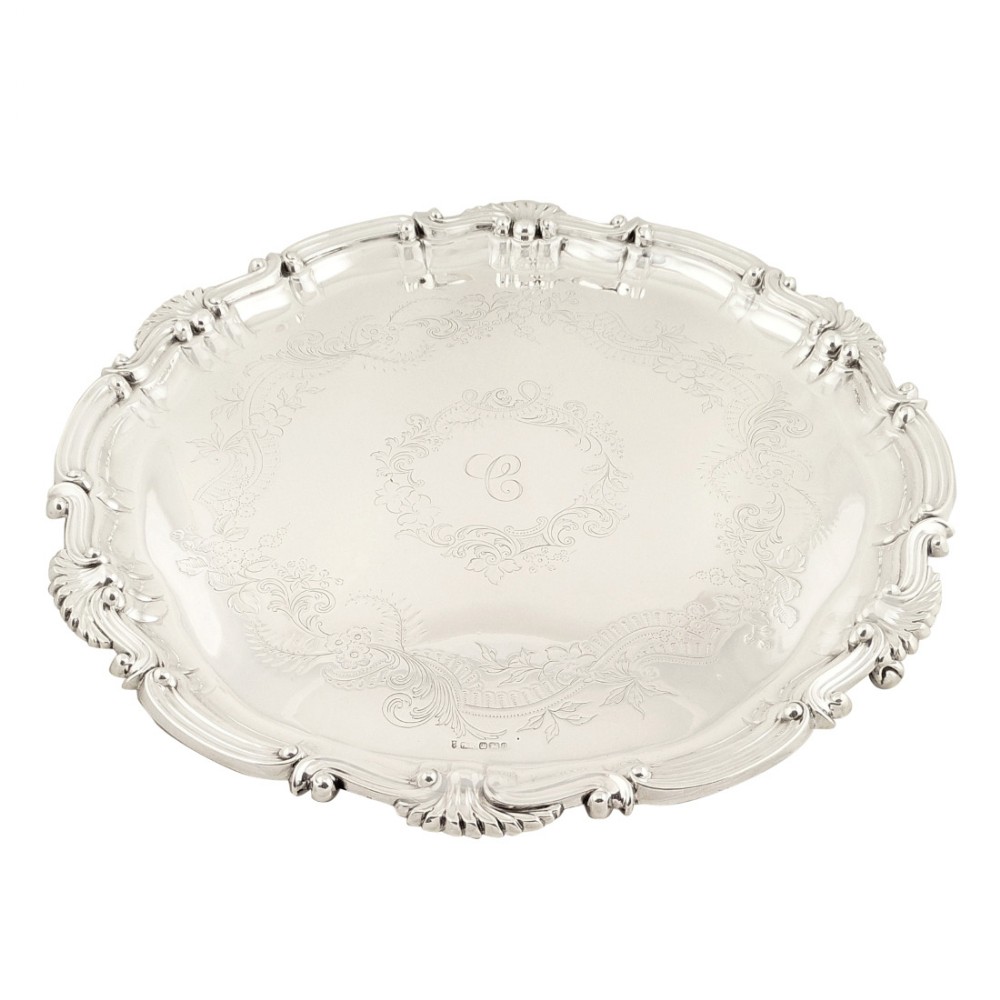Heavy Antique Victorian Sterling Silver 16" Tray / Salver