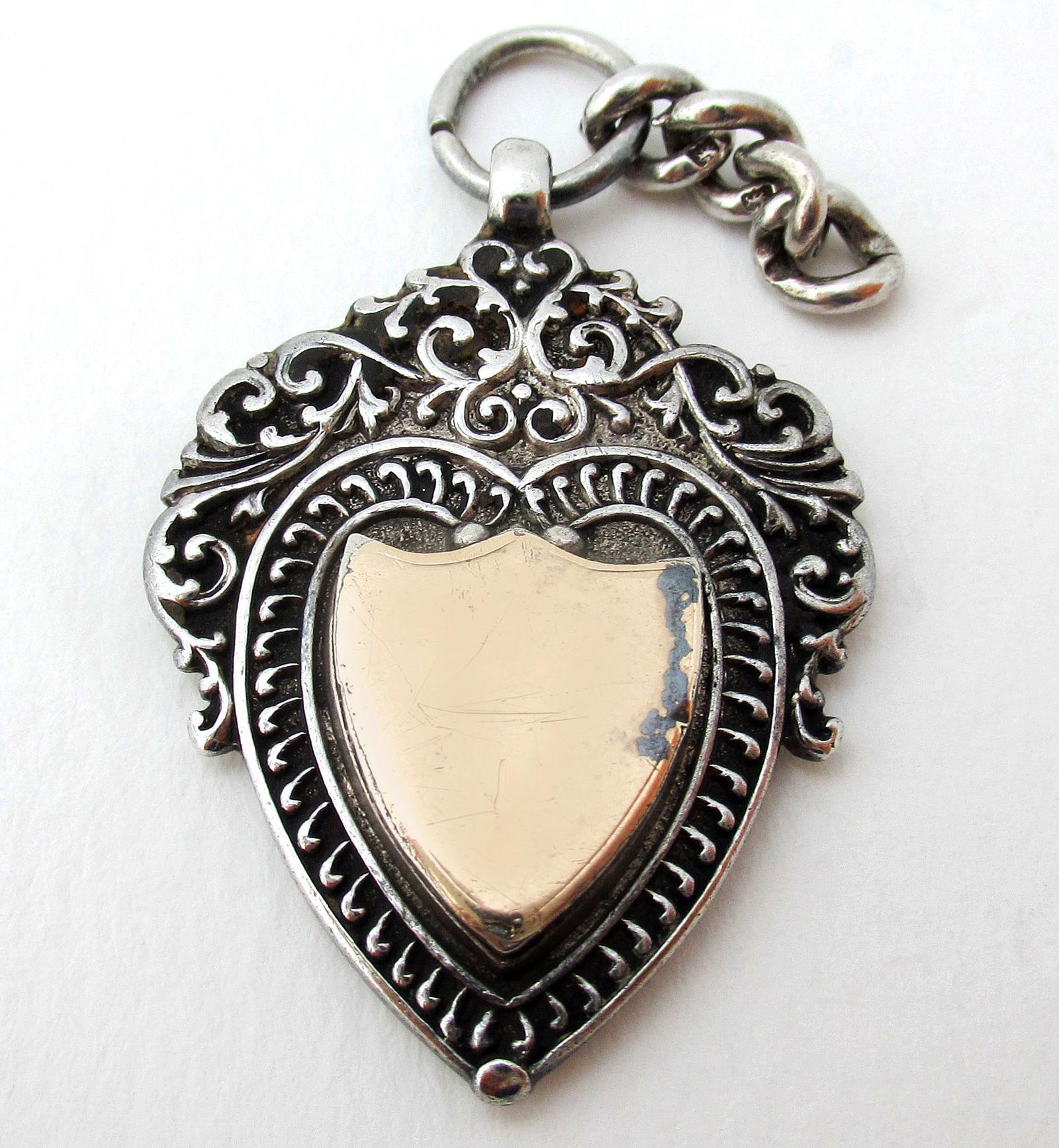 Heavy Double-sided Antique Solid Sterling Silver & Gold Heart-shaped Pocket Watch Fob Medal Pendant (1 of 5)