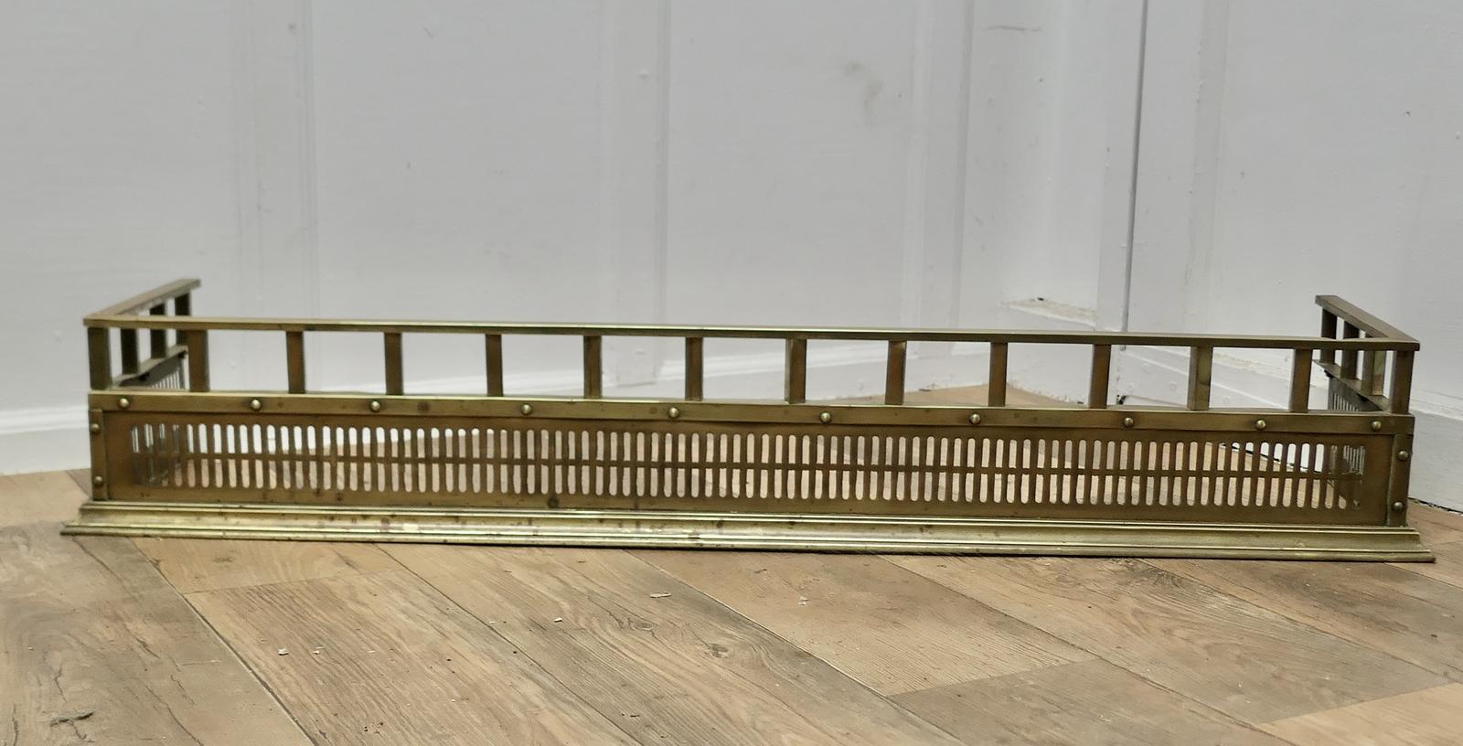 Heavy Quality Victorian Brass Fender, Industrial Look This is a beautifully designed Victorian brass fender it has a strong rectangular look. The fender is very good quality, it is in good condition. It is 8” high, and 48” long and 13” deep Ref: TSC150