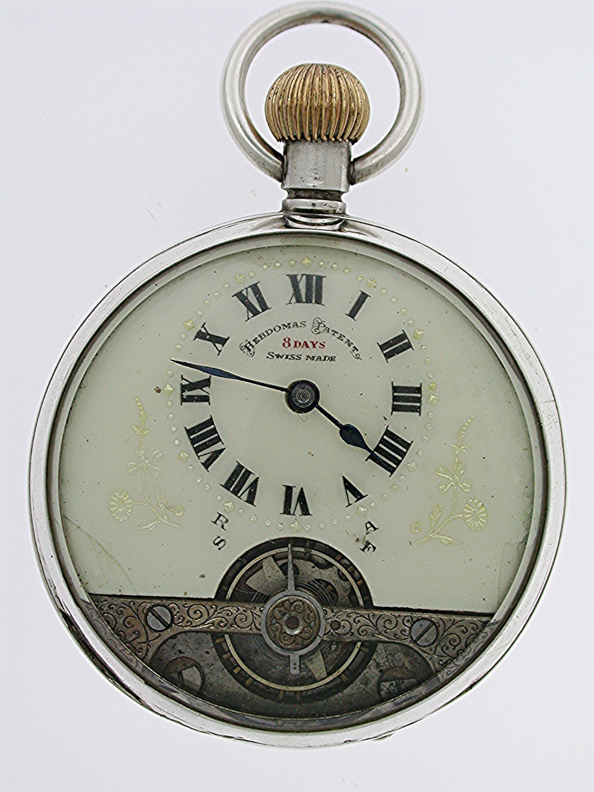 Hebdomas Patent 8 Day Silver 0.925 Open Face Case Pocket Watch Swiss Made 1918