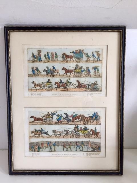 Henry Alken Hand Coloured Prints "Road to a Fight" 1821 Plates 1 & 2