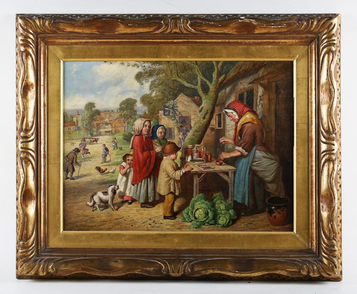 Henry Charles Bryant 19th Century Oil Genre Scene of Children at Fair