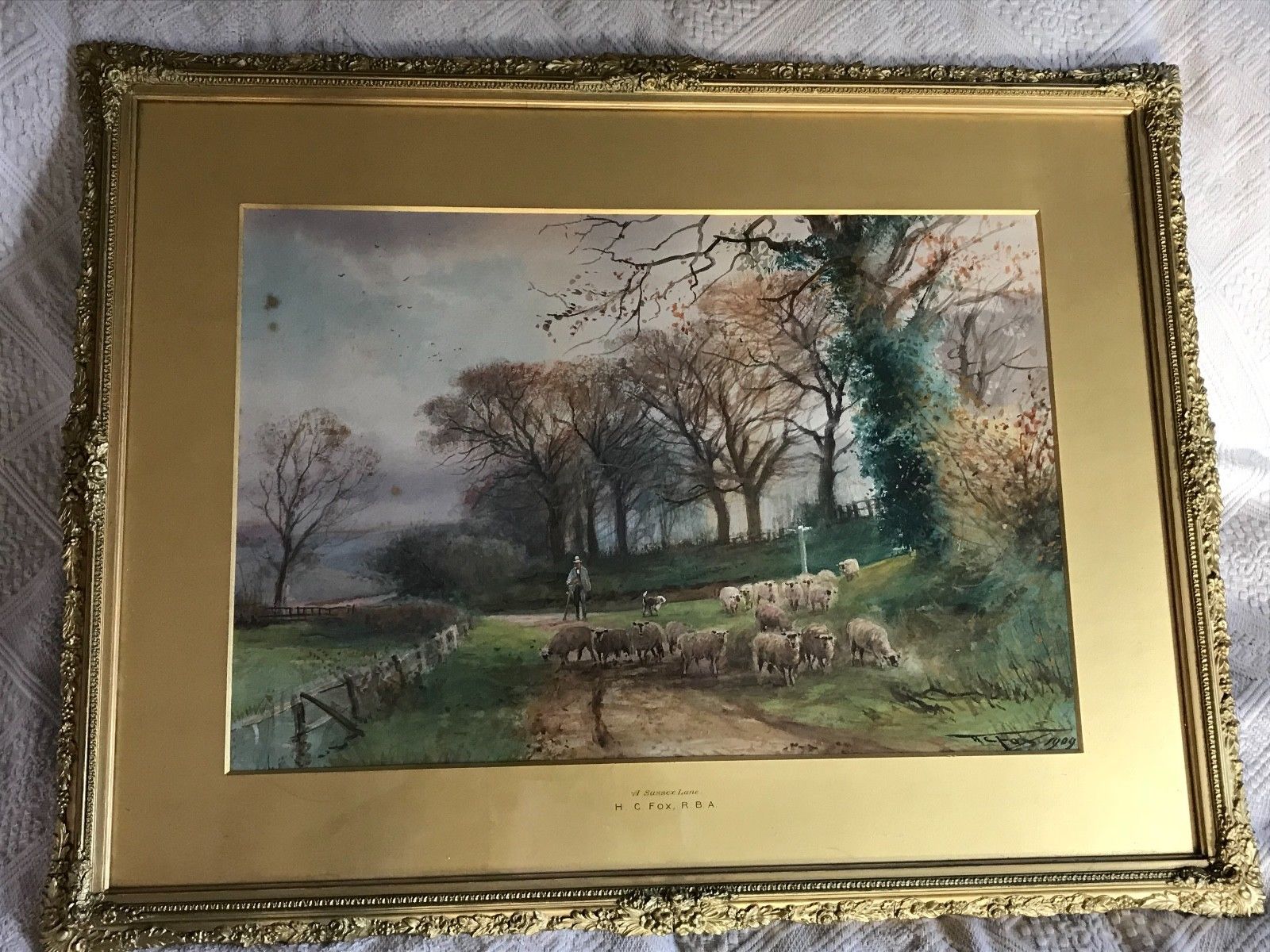 Henry Charles Fox RBA Watercolour 1909 - A Sussex Lane