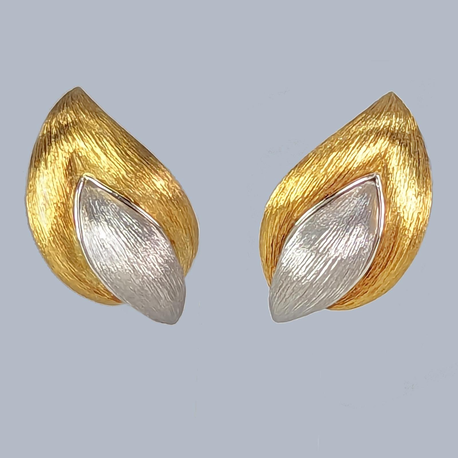 Henry Dunay Leaf Flame Earrings 18ct Yellow White Gold 1980s Vintage Earrings