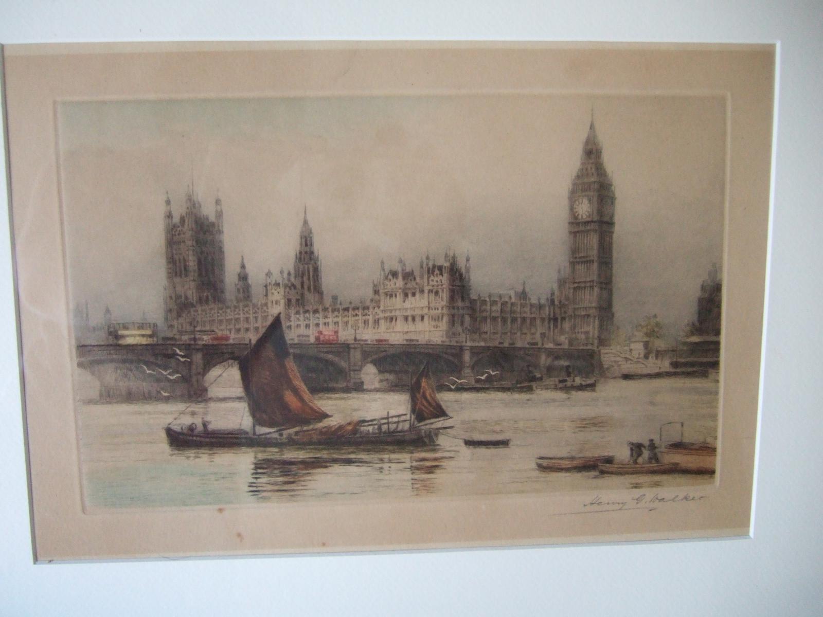 Henry George Walker Coloured Etching of the Houses of Parliament, London (1 of 5)