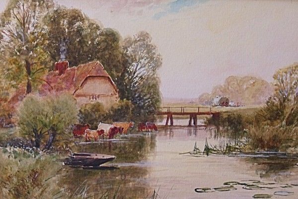 Henry John Kinnaird Original Watercolour Painting - River Stour with Cattle