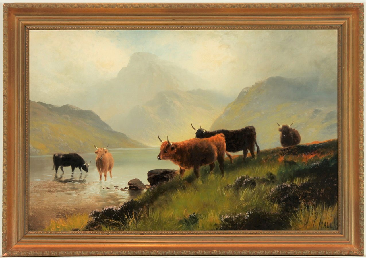 Henry Robinson Hall Nba - Signed Oil, Highland Landscape with Cattle