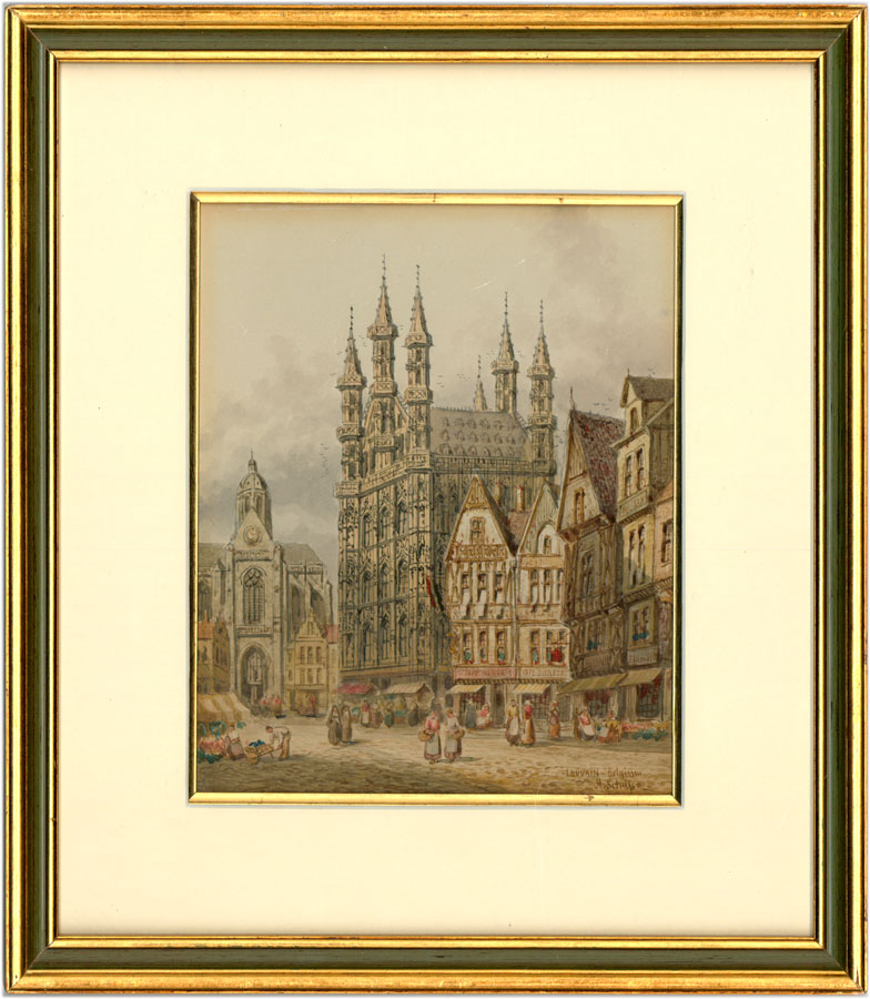 Henry Thomas Schaffer - Watercolour, Louvain Market Scene