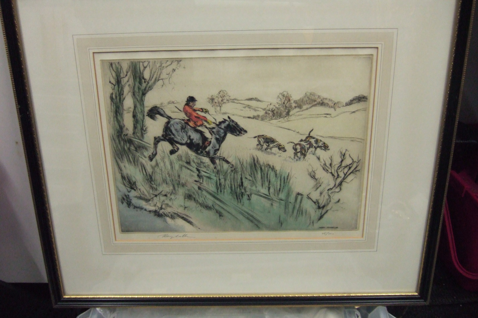 Henry Wilkinson - hand coloured engraving of a huntsman jumping a fence