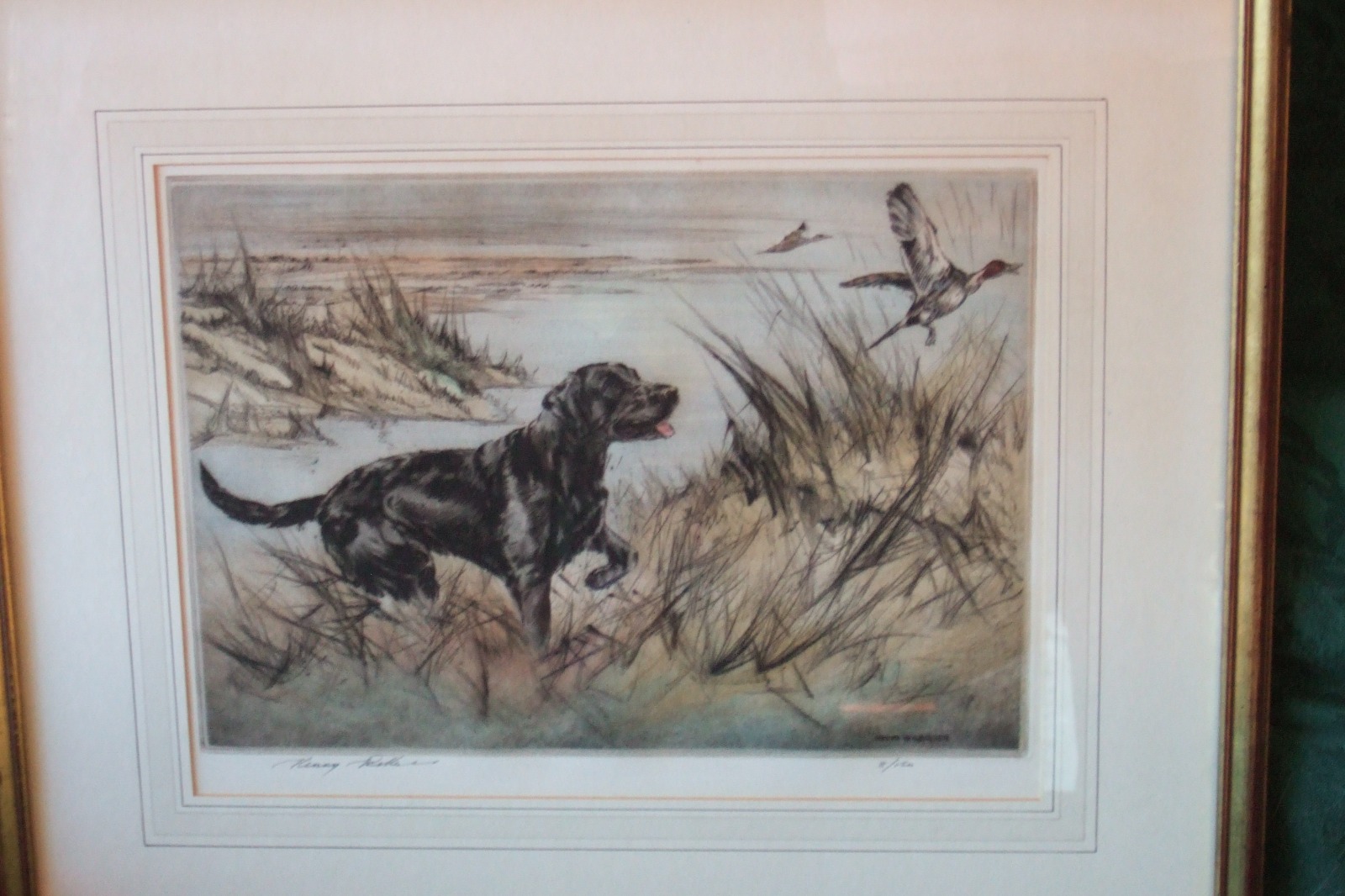 Henry Wilkinson Hand Coloured Engraving of Labrador with Mallard